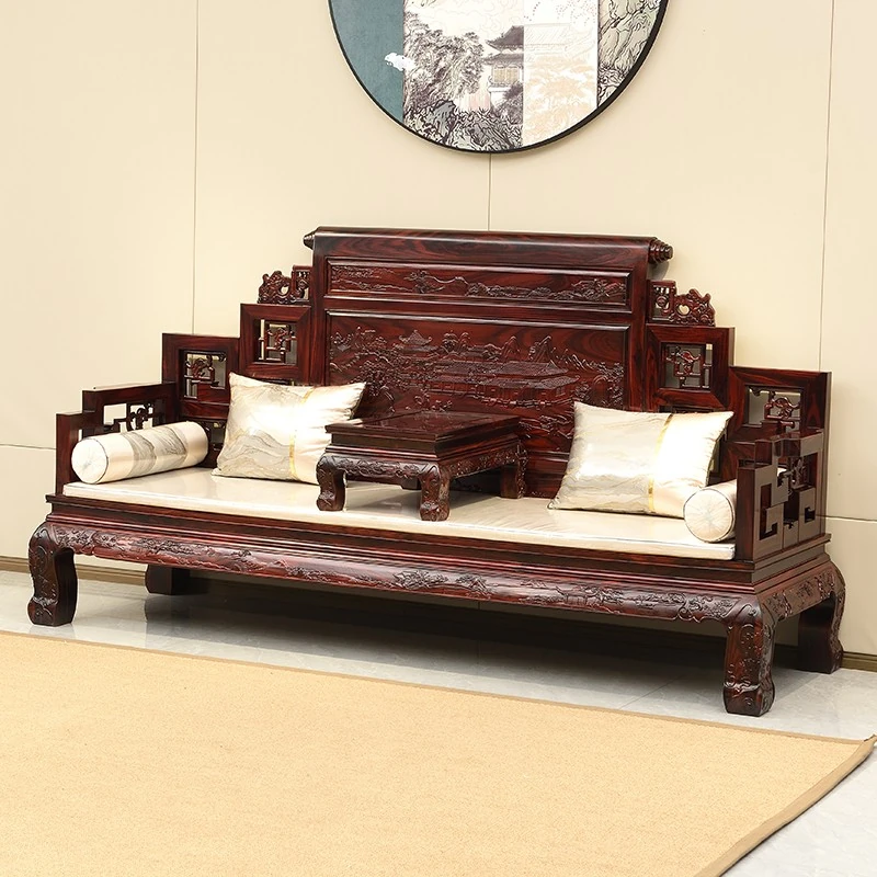 国標の紅木家具、リビングルーム用の全セット!インドネシア産の黒酸枝を使用した中式全実木製の巻物宝座ソファーセット。高級感溢れるデザインで、居心地の良い空間を演出します!