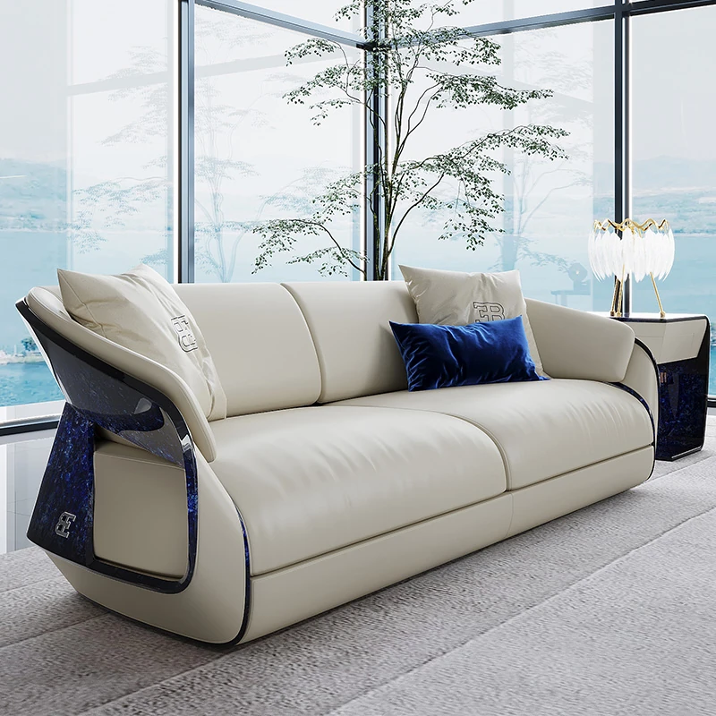 ポストモダン高級軽奢別荘用本革ソファセット|一流の贅沢、港式スタイルのリビングルームにぴったりなモデルルーム家具!おしゃれで快適な空間を演出します。