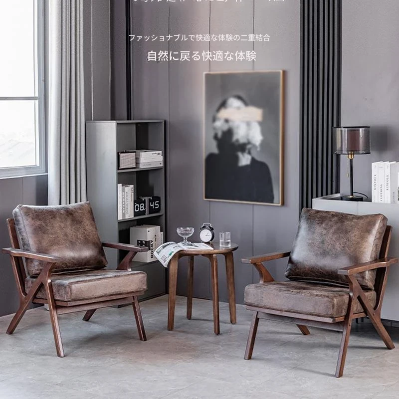 北欧スタイルの軽奢実木チェア - 家庭用リビングやバルコニーに最適な、ウォールナットの一人掛けソファチェア。洗練されたデザインで快適さを追求!