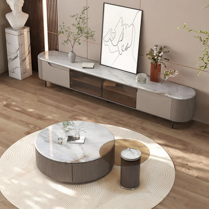 贅沢なイタリアンミニマリズム天然大理石テレビ台 - 小型住宅にぴったりなラグジュアリーな彩晶石コーヒーテーブル&テレビ台セット!シンプルで洗練されたデザインがあなたのリビングを格上げします。
