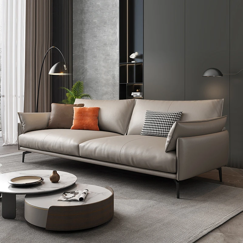 イタリアンミニマル本革ソファ・コネリー - ラグジュアリーなモダンデザイン、広々としたリビングルームに最適!洗練されたスタイルで心地よい空間を演出します。