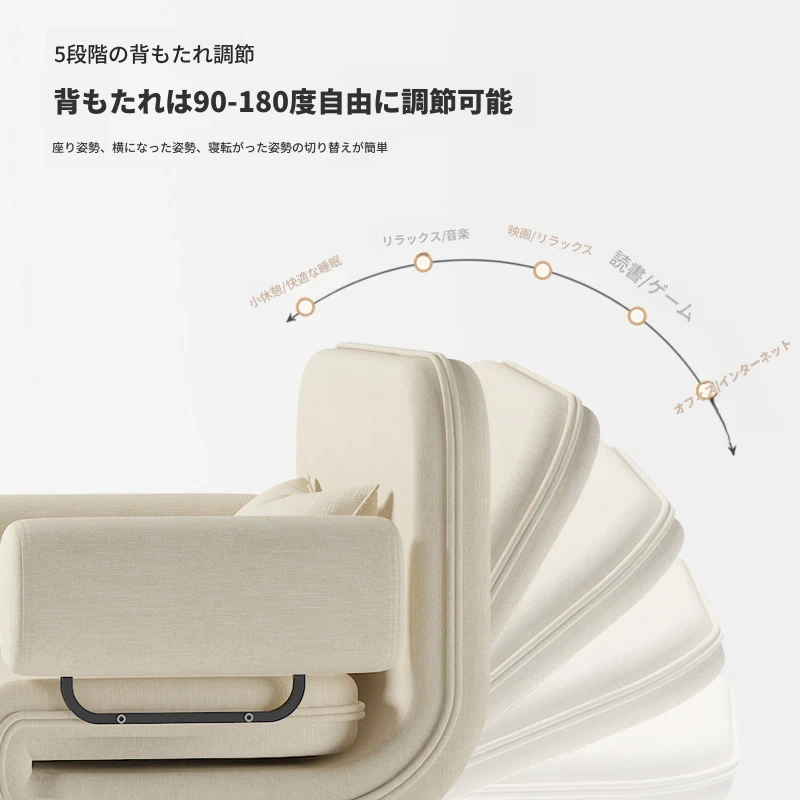 楽々リクライニングソファー - 和モダンスタイルの一人掛け、リビングや寝室にぴったり!調整可能な布製のクリエイティブなデザインで、快適な足置き付き。リラックスしたい時に最適な休息スペースを提供します!
