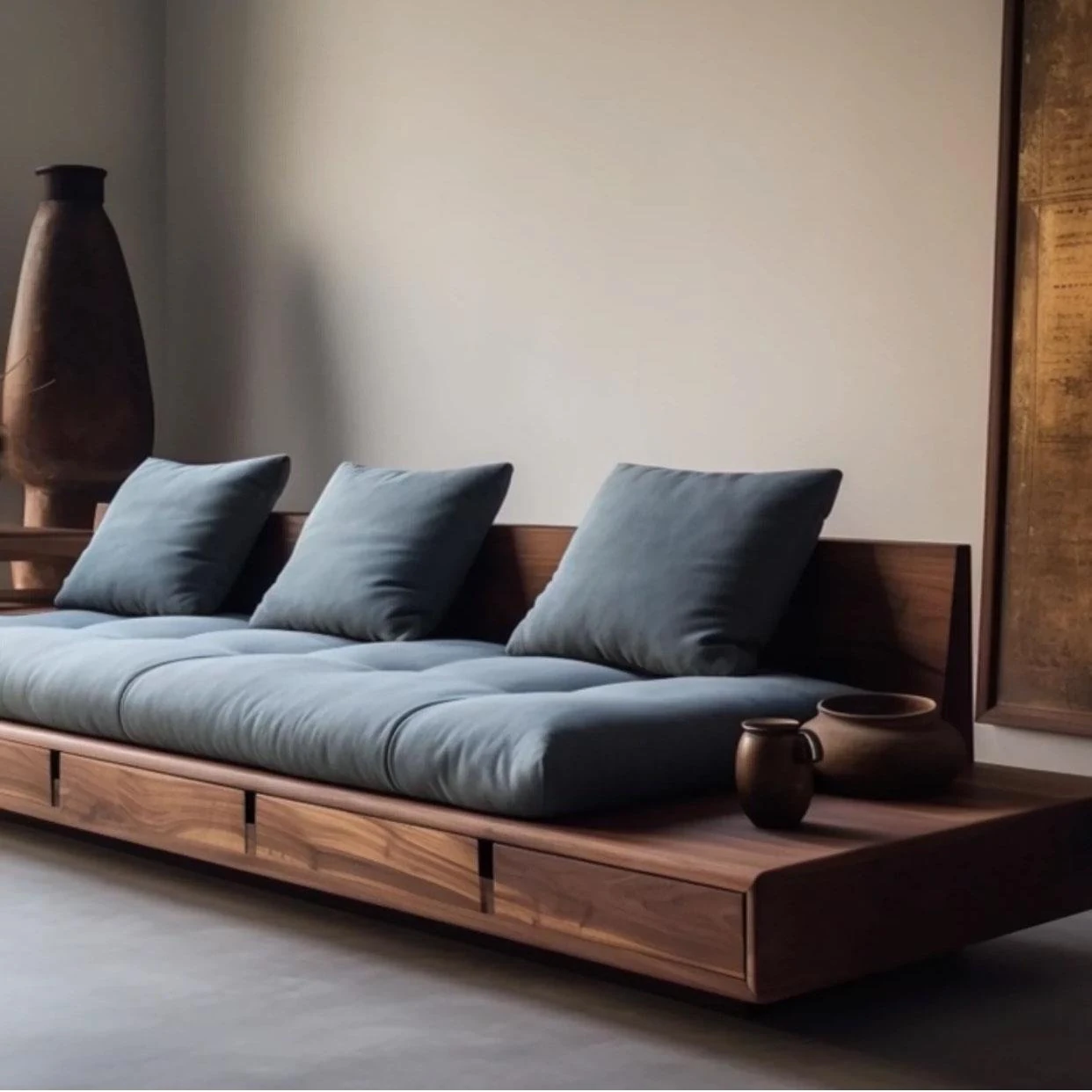 新中式ブラックウォールナットソファ - 古風でスタイリッシュなリビングのための冬夏両用収納ソファ、北欧スタイルの無垢材家具であなたの空間を優雅に演出!