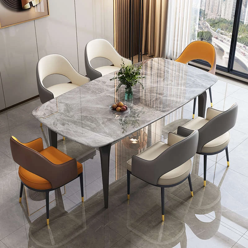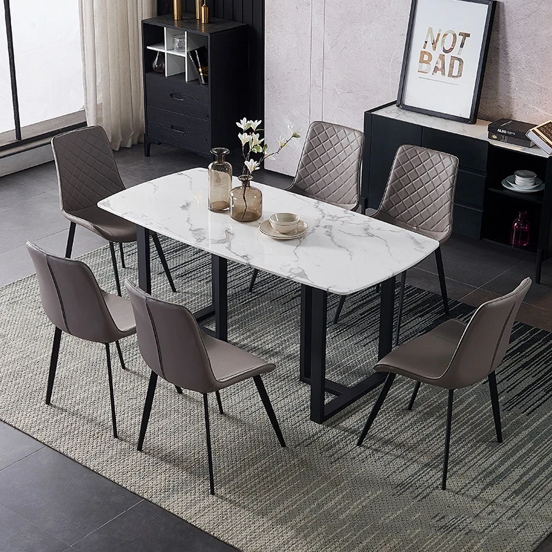 Modern Minimalist Luxury Ultra Crystal Stone Dining Table and Chair Set - Rectangular Marble Dining Table with Elegant Rock Plate Design for Stylish Dining Experiences