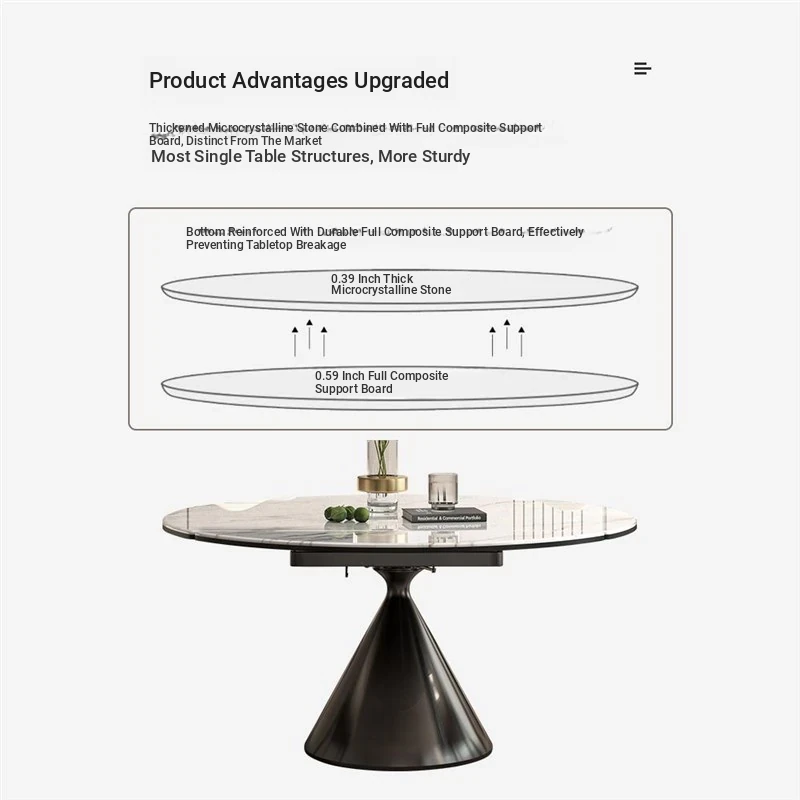 Luxury Expandable Round Dining Table with Natural Microcrystalline Stone - Elegant Marble Design for Upscale Dining Experience. Perfect for Modern Homes!