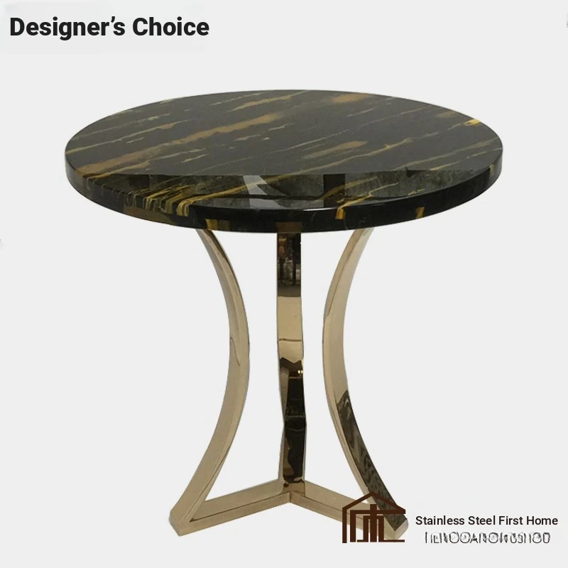 Elegant Stainless Steel Round Marble Dining Table – Perfect for Casual Meetings, Coffee Breaks, and Business Gatherings. A Stylish Addition to Your Office or Reception Area.