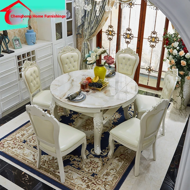Modern European Marble Extendable Dining Table Set - Stylish Round Table and Chairs for Home Use, Perfect for Multifunctional Dining Experience