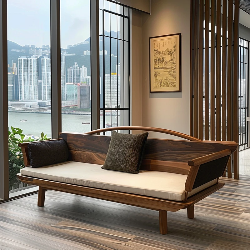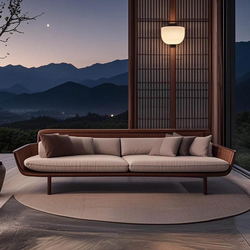 High-End Zen Style Ash Wood Sofa - Luxurious and Elegant Living Room Furniture in North American Black Walnut - Perfect for Modern Homes