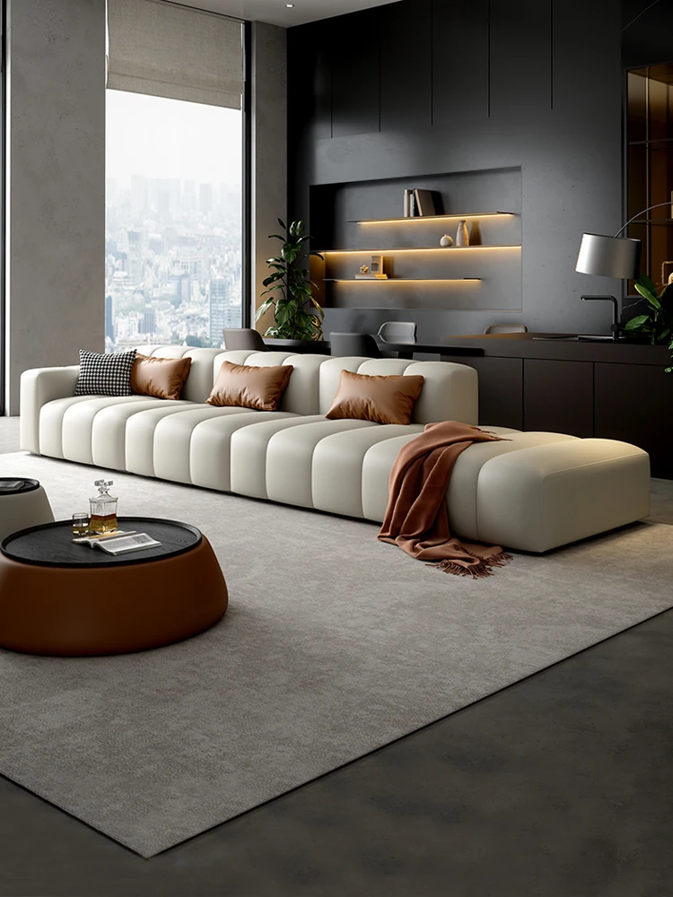Premium Italian Minimalist Leather Sofa - Luxurious Piano Key Design for Spacious and Compact Living Rooms, Crafted from Top-Quality Full-Grain Cowhide. Perfect for Stylish Interiors!