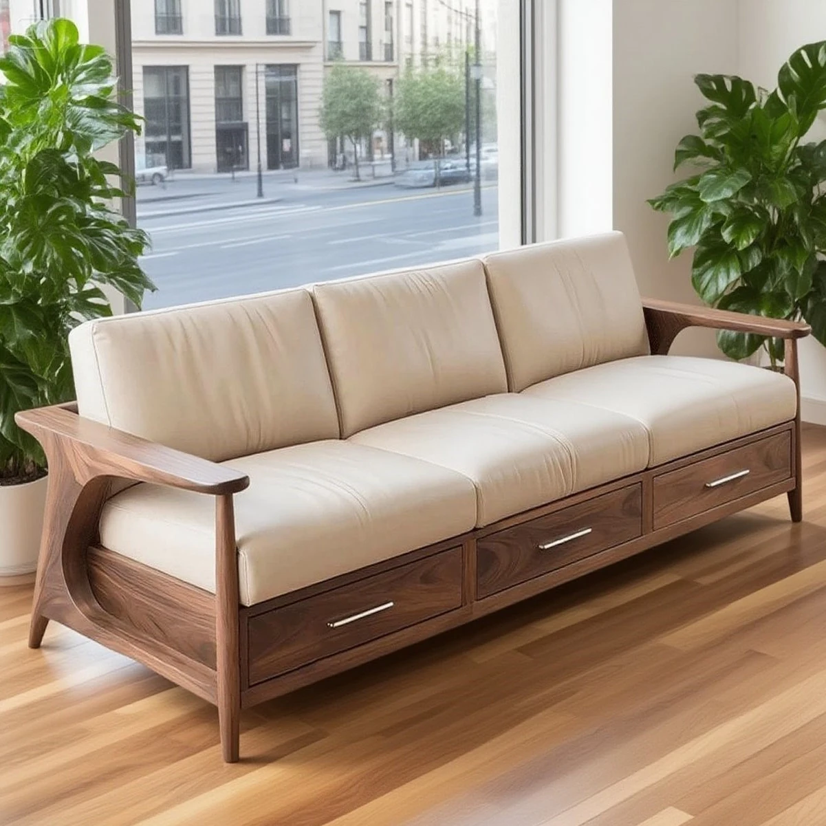 Elegant Zen-Style White Ash Wood Sofa - High-End, Light Luxury for Home Living Room. Crafted from North American Black Walnut, this Solid Wood Furniture combines sophistication and comfort for a serene ambiance. Perfect for modern spaces!