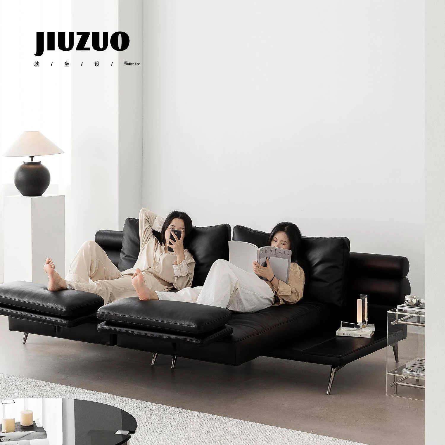 Genuine Leather Italian Minimalist Three-Seat Sofa for Small Living Rooms - Modern Design with Down-Filled Cat Paw Upholstery