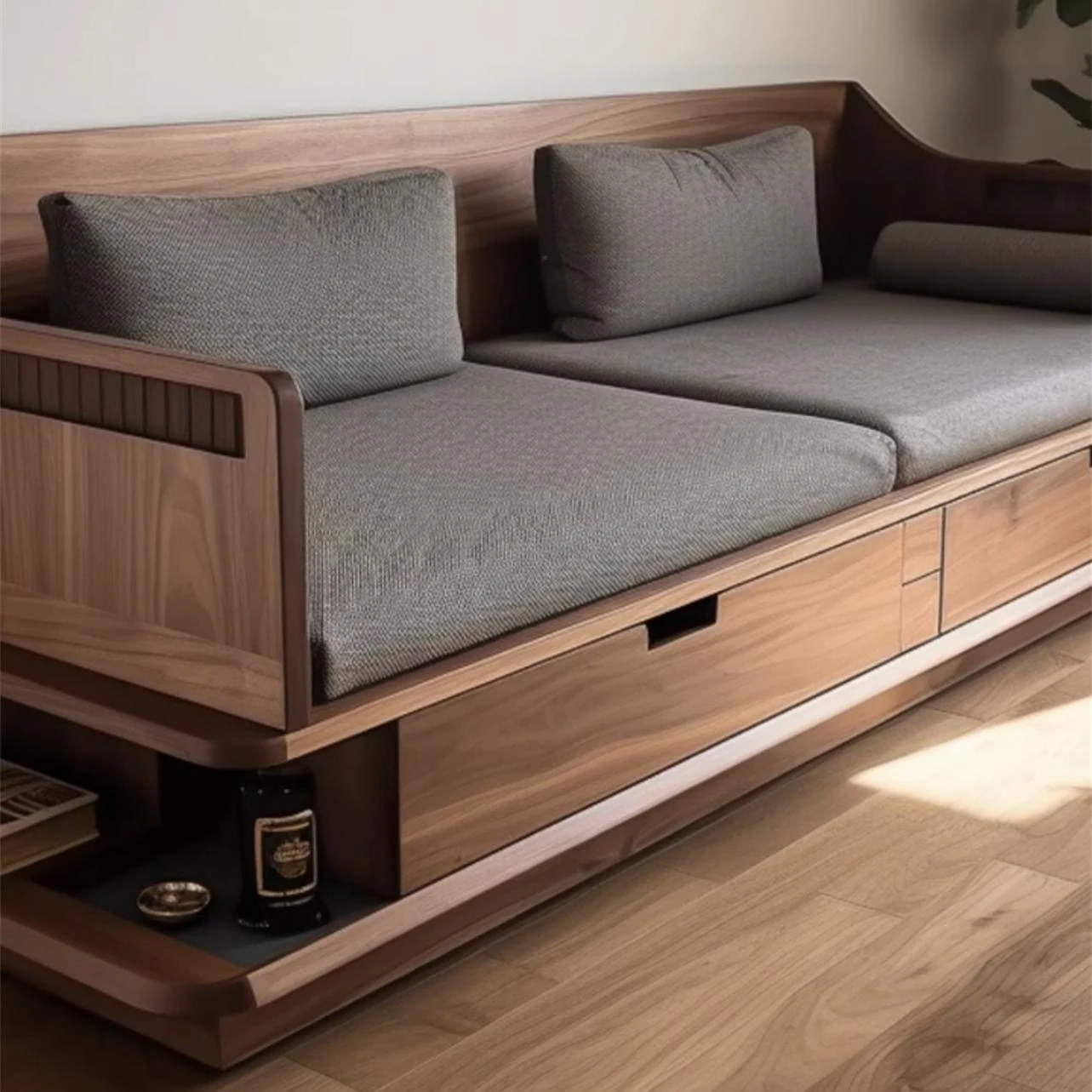 Modern Chinese Style Black Walnut Sofa - Vintage Chic Living Room Furniture for All Seasons with Storage - Nordic Solid Wood Design