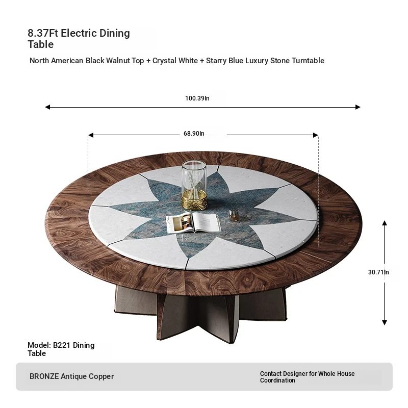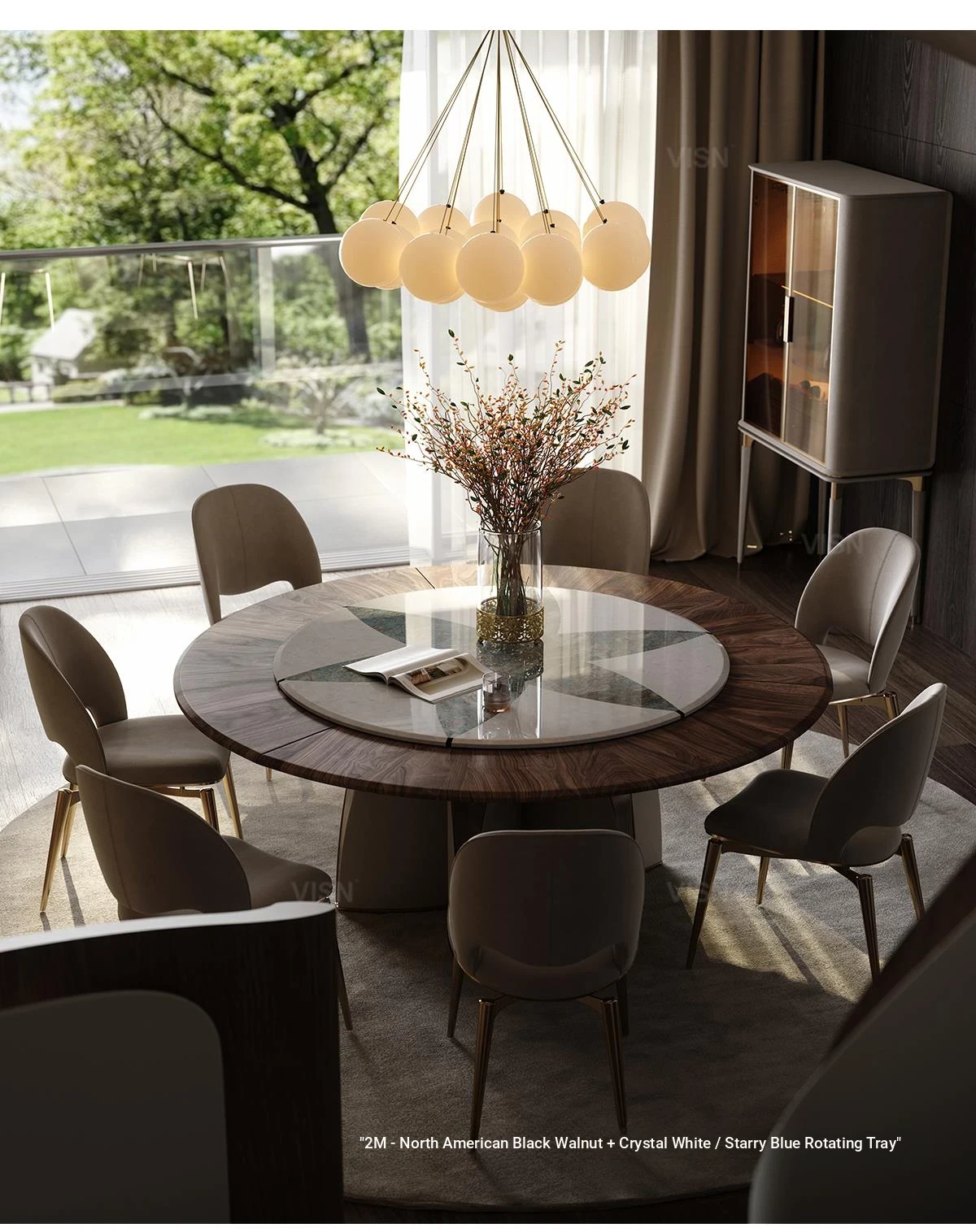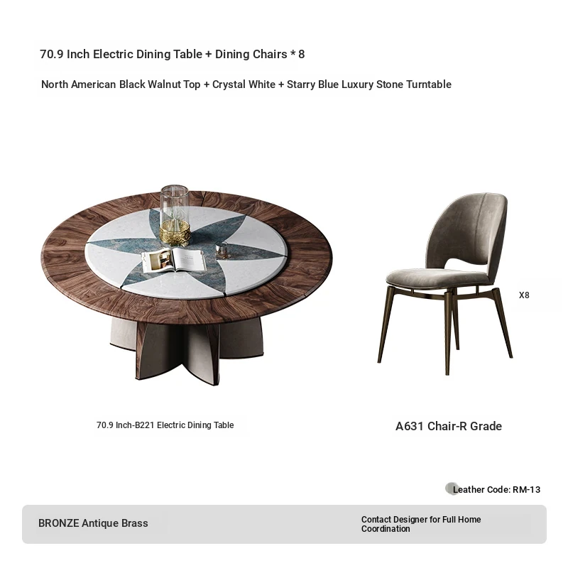 70.87in North American Black Walnut Wood + Crystal White/Star Blue Luxury Stone Turntable + A631 Dining Chair * 8 (Grade R)