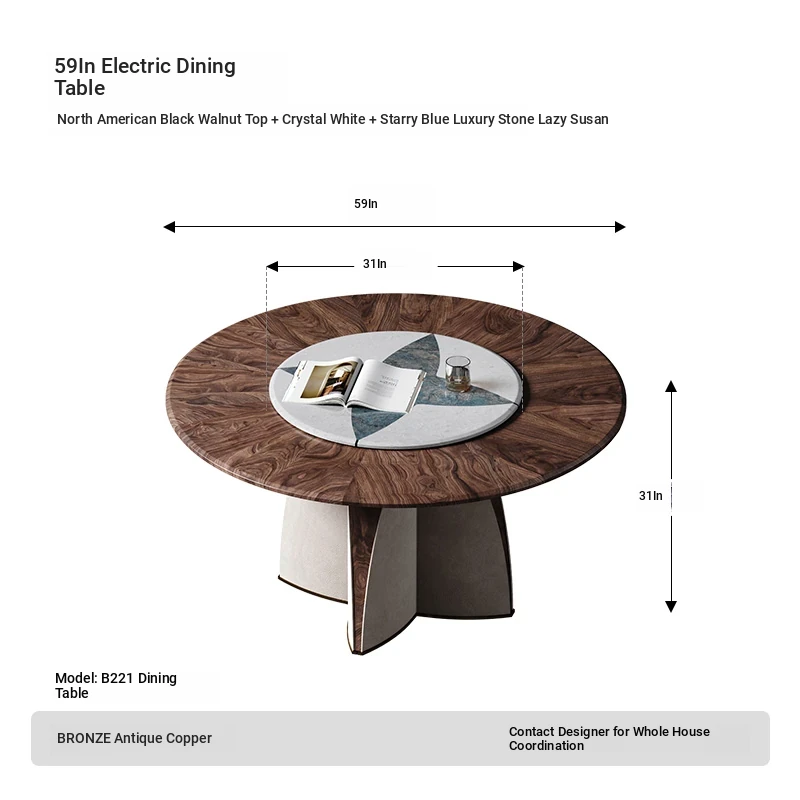 59.06in North American Black Walnut Wood + Crystal White/Star Blue Luxury Stone Turntable