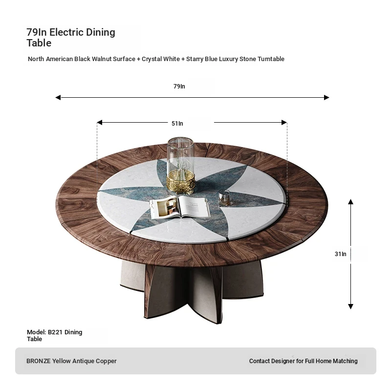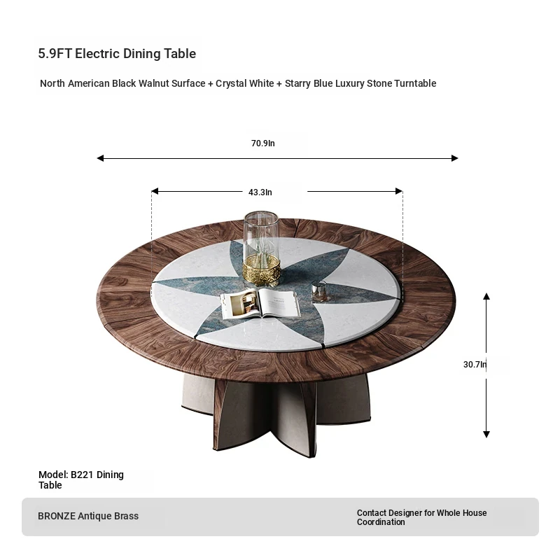 70.87in North American Black Walnut Wood + Crystal White/Star Blue Luxury Stone Turntable