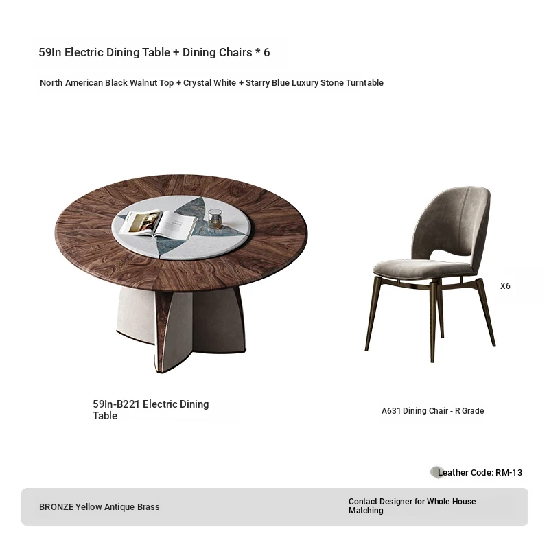 59.06in North American Black Walnut Wood + Crystal White/Star Blue Luxury Stone Turntable + A631 Dining Chair * 6 (Grade R)