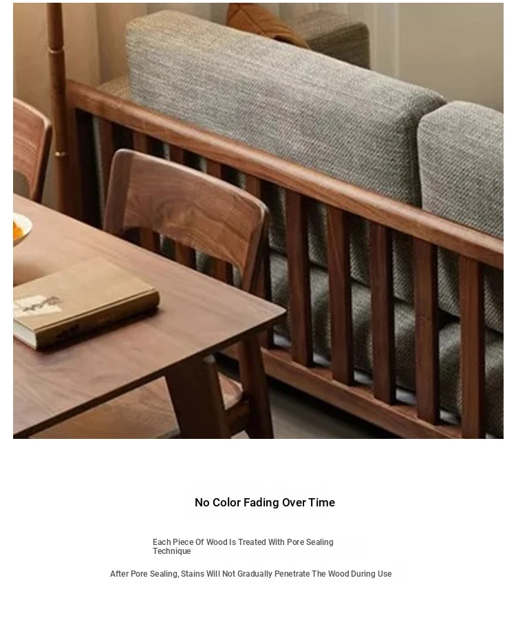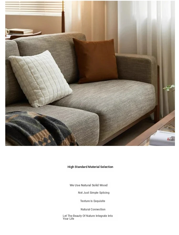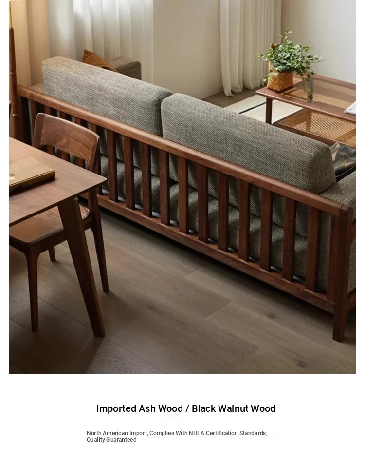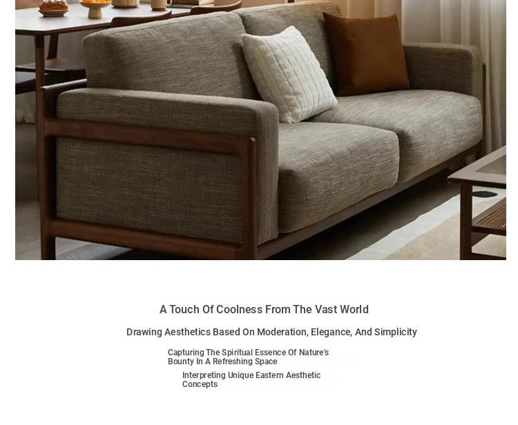2025 Modern Solid Wood Sofa - New Chinese Zen Style, Walnut & Ash Fabric Furniture for Hotels, Guesthouses & Offices