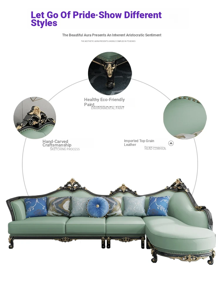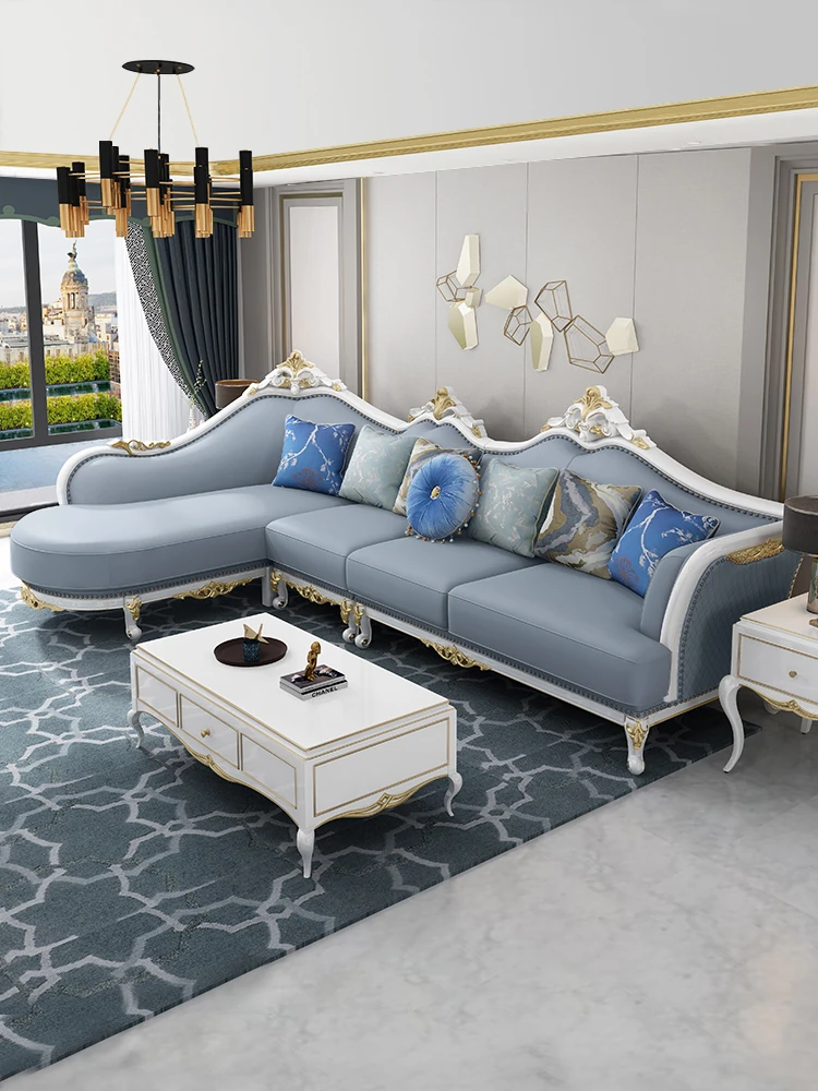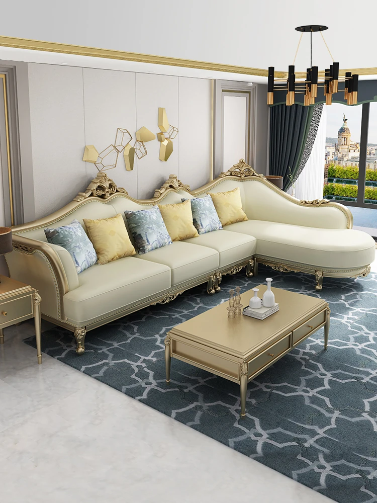 2025 New Luxury European Style Genuine Leather Sofa Set - Corner Chaise Lounge for Small Living Rooms, Elegant American Furniture