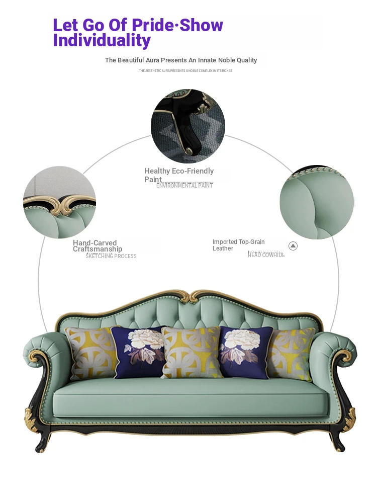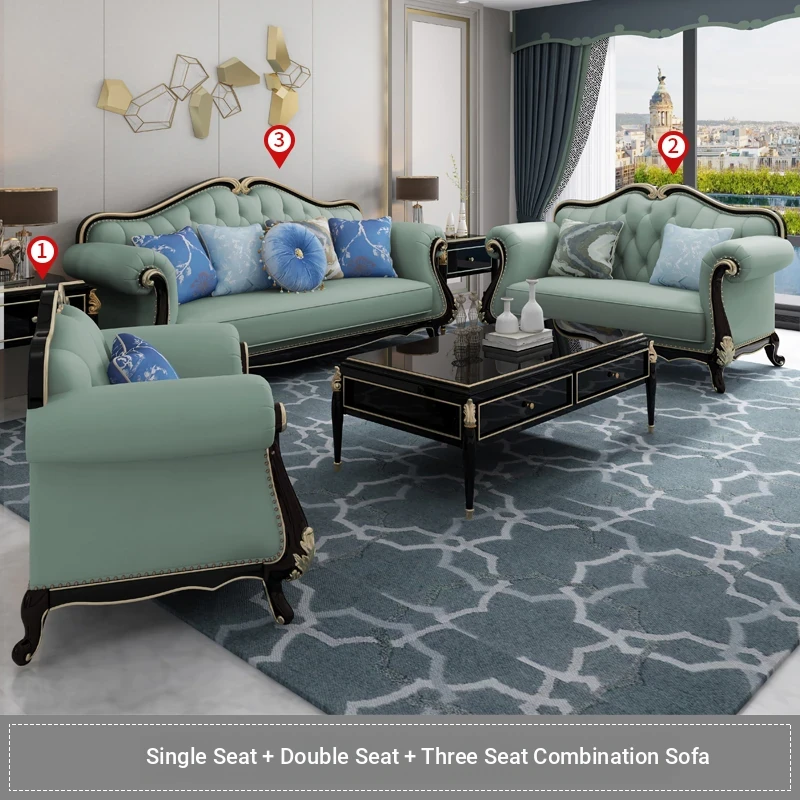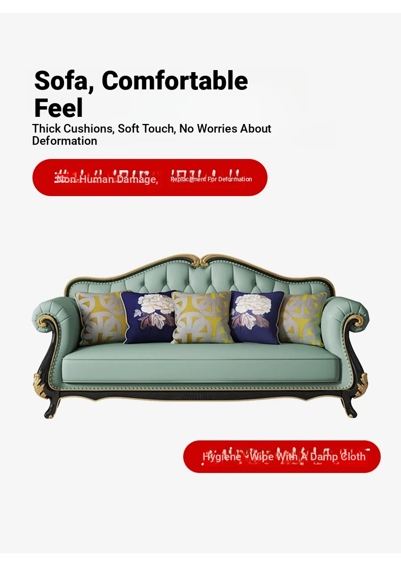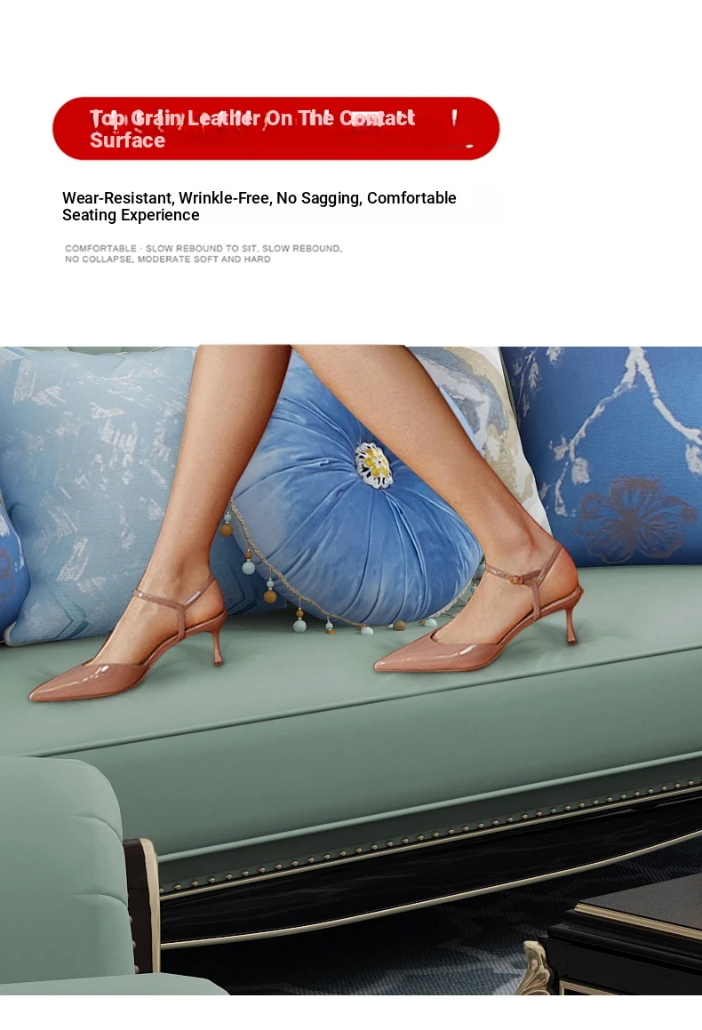 American Light Luxury Genuine Leather Sofa Set - Modern Minimalist European Style Solid Wood High-End Luxury for Small Spaces