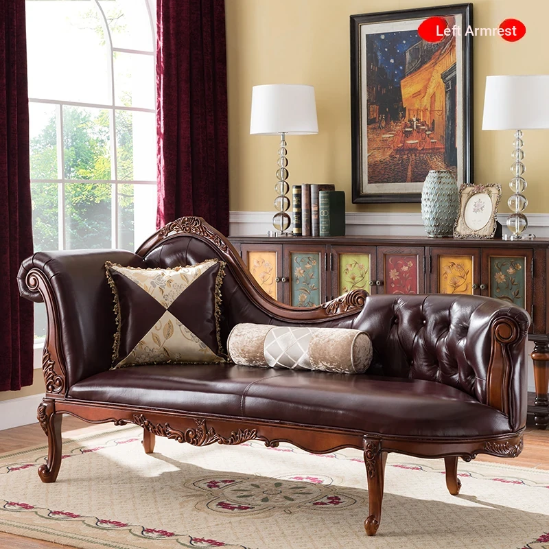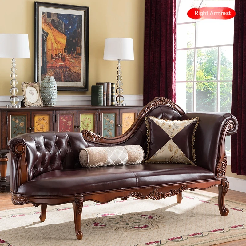 American Style Solid Wood Chaise Lounge - Multifunctional Recliner Single Sofa Chair for Living Room, Bedroom, and Small Spaces - Perfect for Relaxation and Elegance