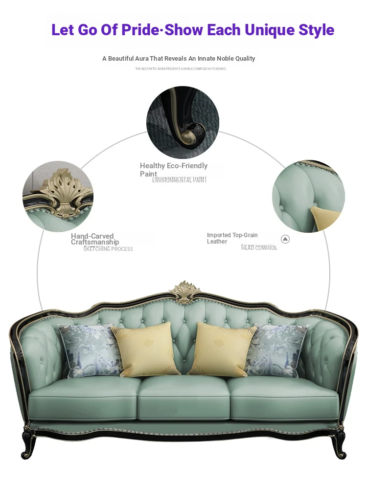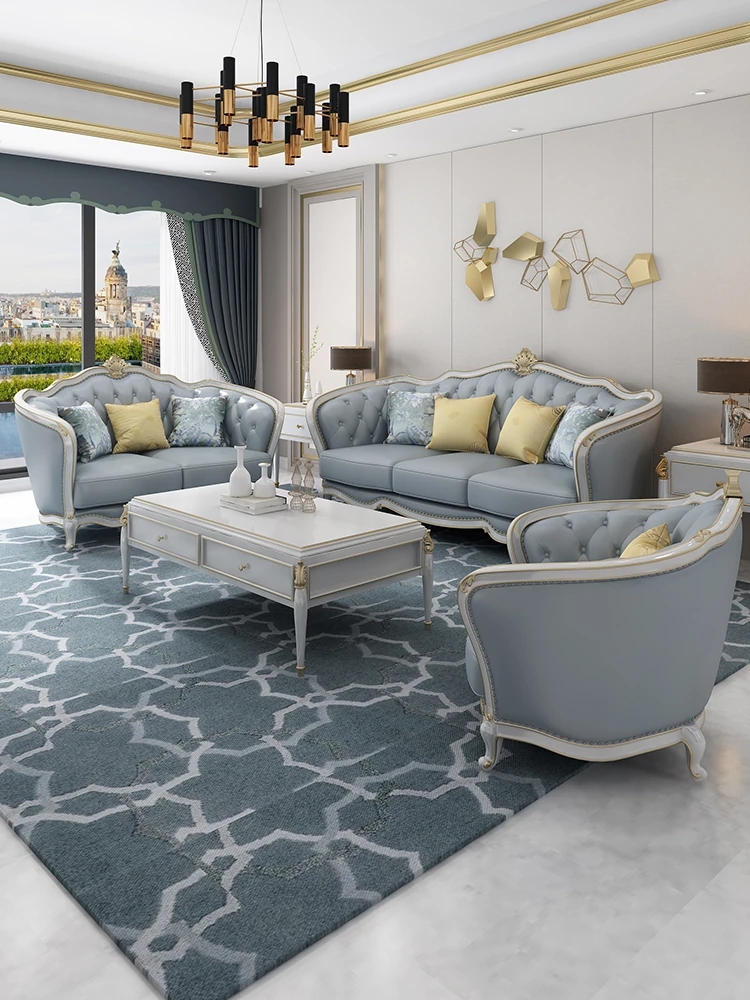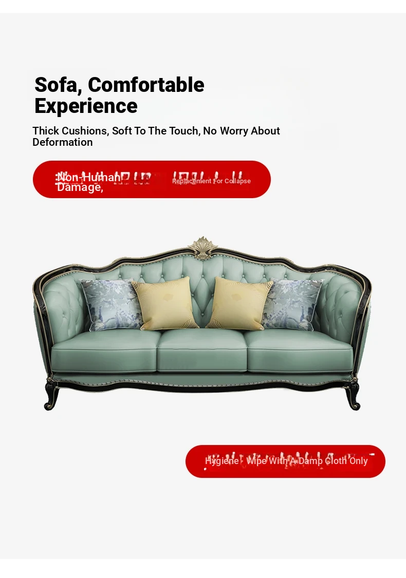 American-style Luxurious Leather Sofa Set - 1-2-3 Combination for Modern Minimalist and Country Style Living Rooms - Premium Solid Wood, Elegant and High-End Design