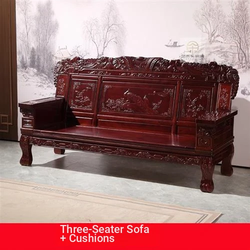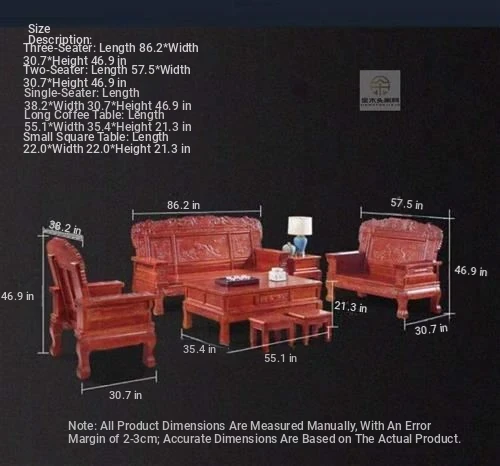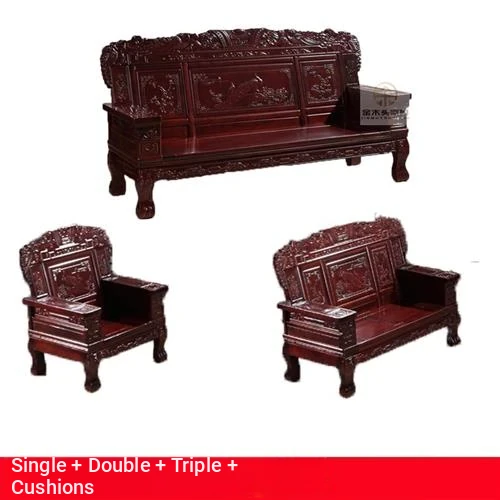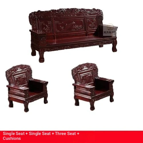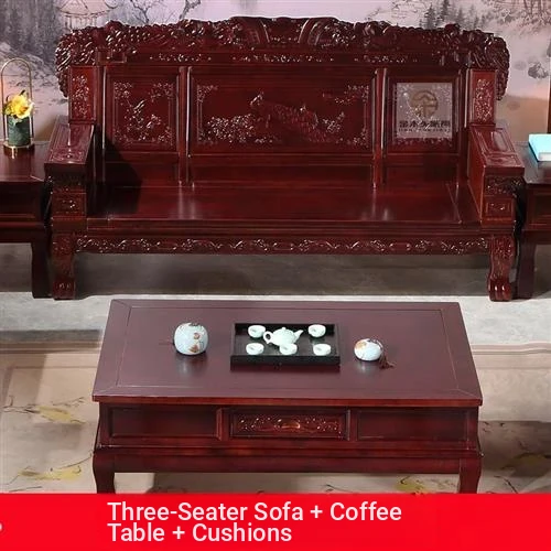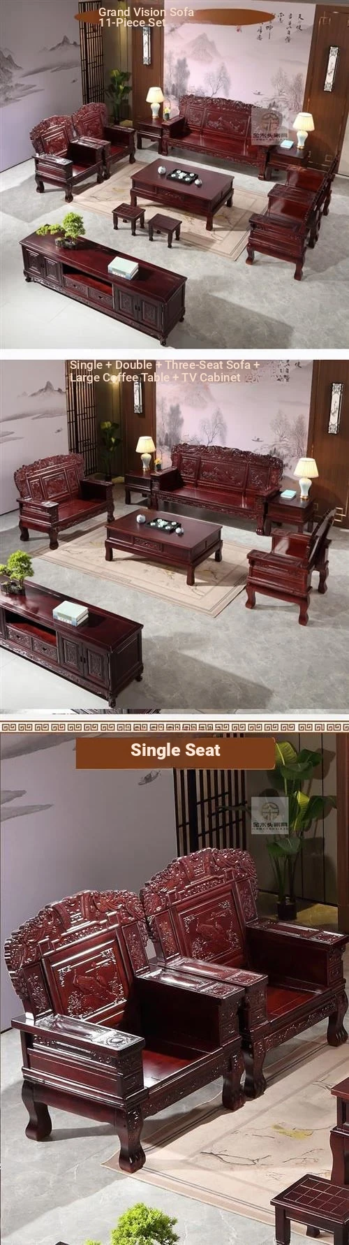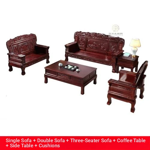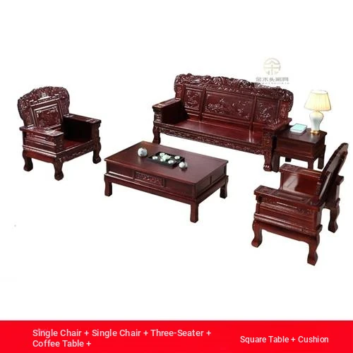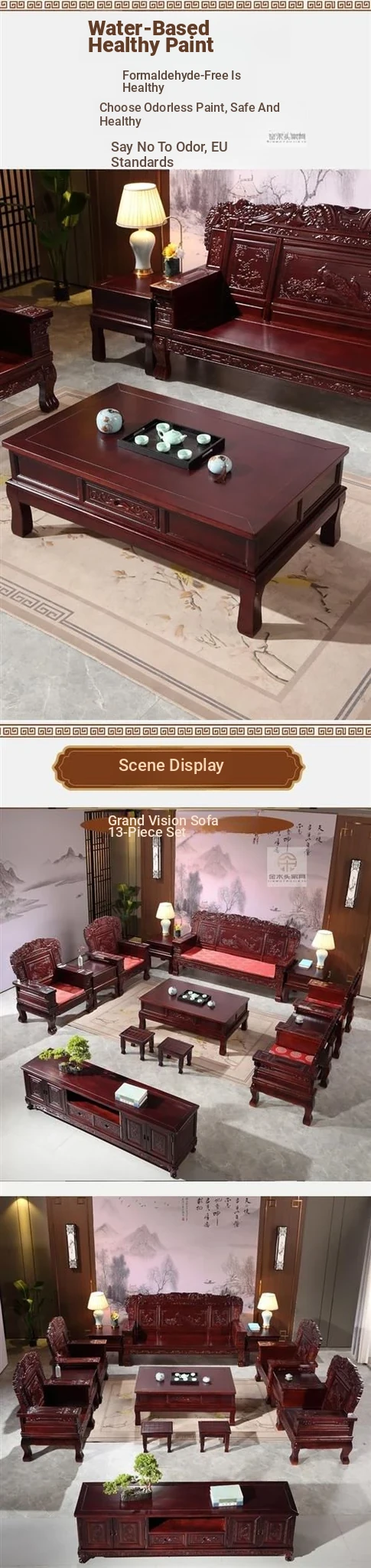 Complete Solid Wood Sofa Set with Coffee Table and TV Cabinet - Vintage Rosewood Carved Design for Rural Villas and Elegant Living Rooms