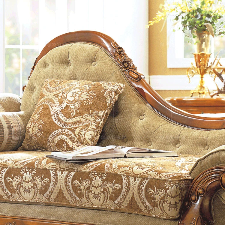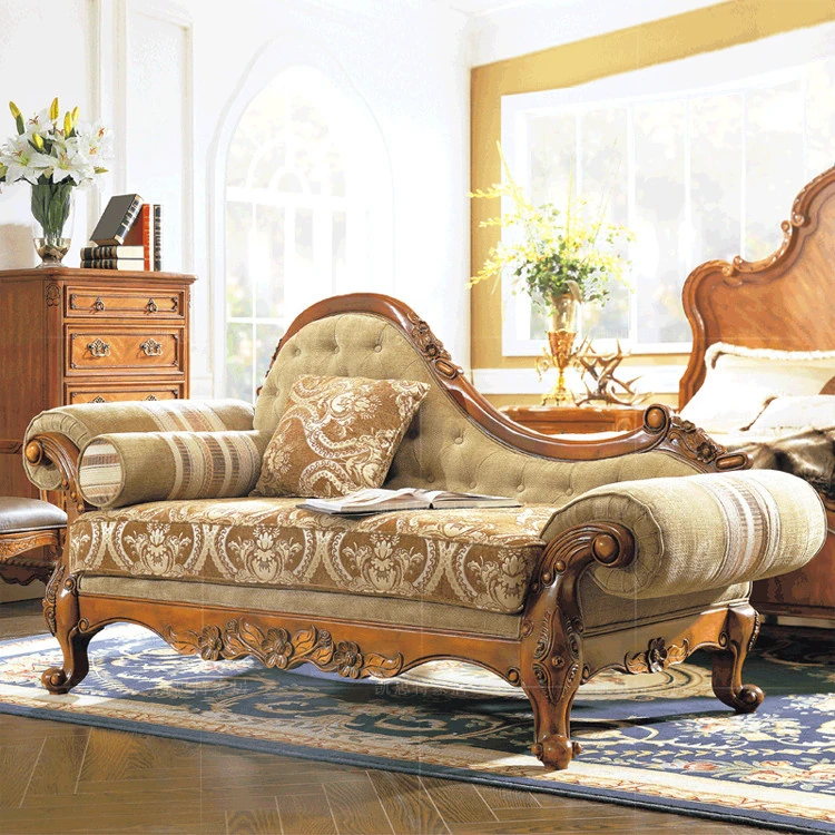 Elegant American Solid Wood Carved Chaise Lounge - High-End Upholstered European Style Love Seat with Exquisite Carvings - Perfect for Cozy Moments and Romantic Settings