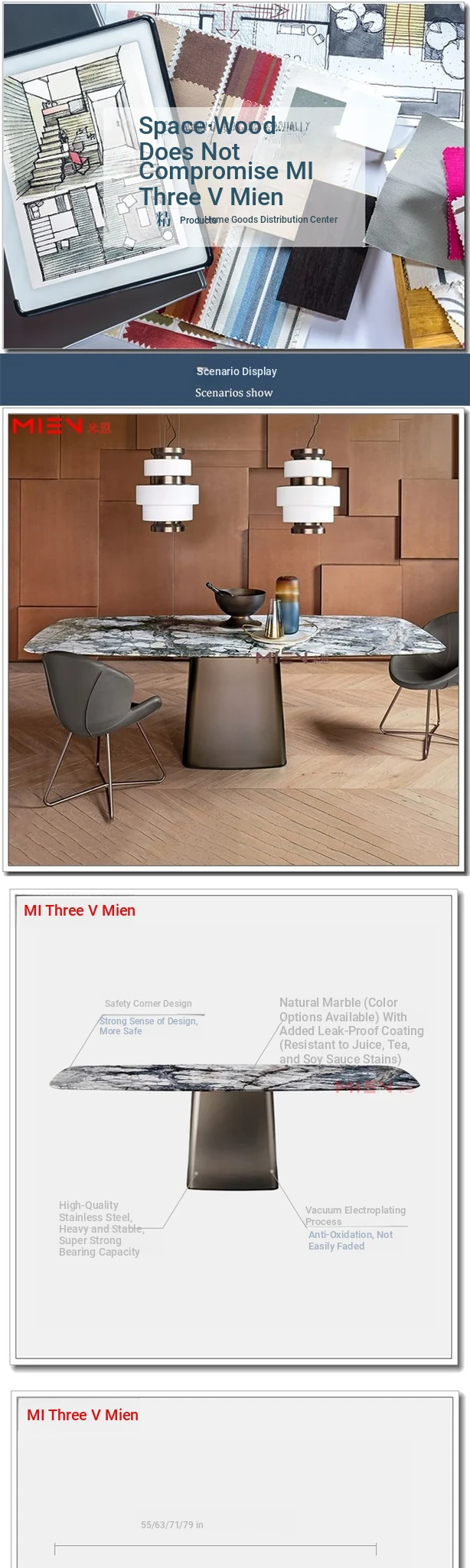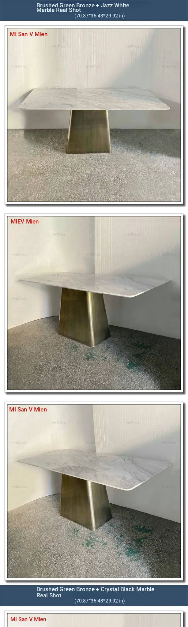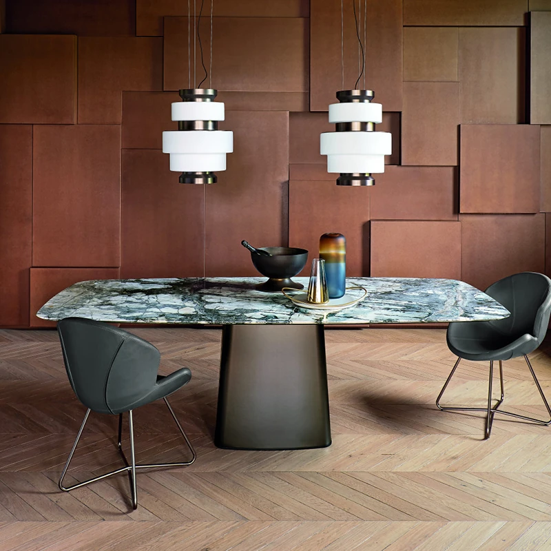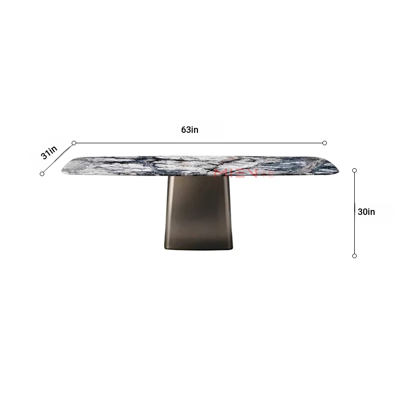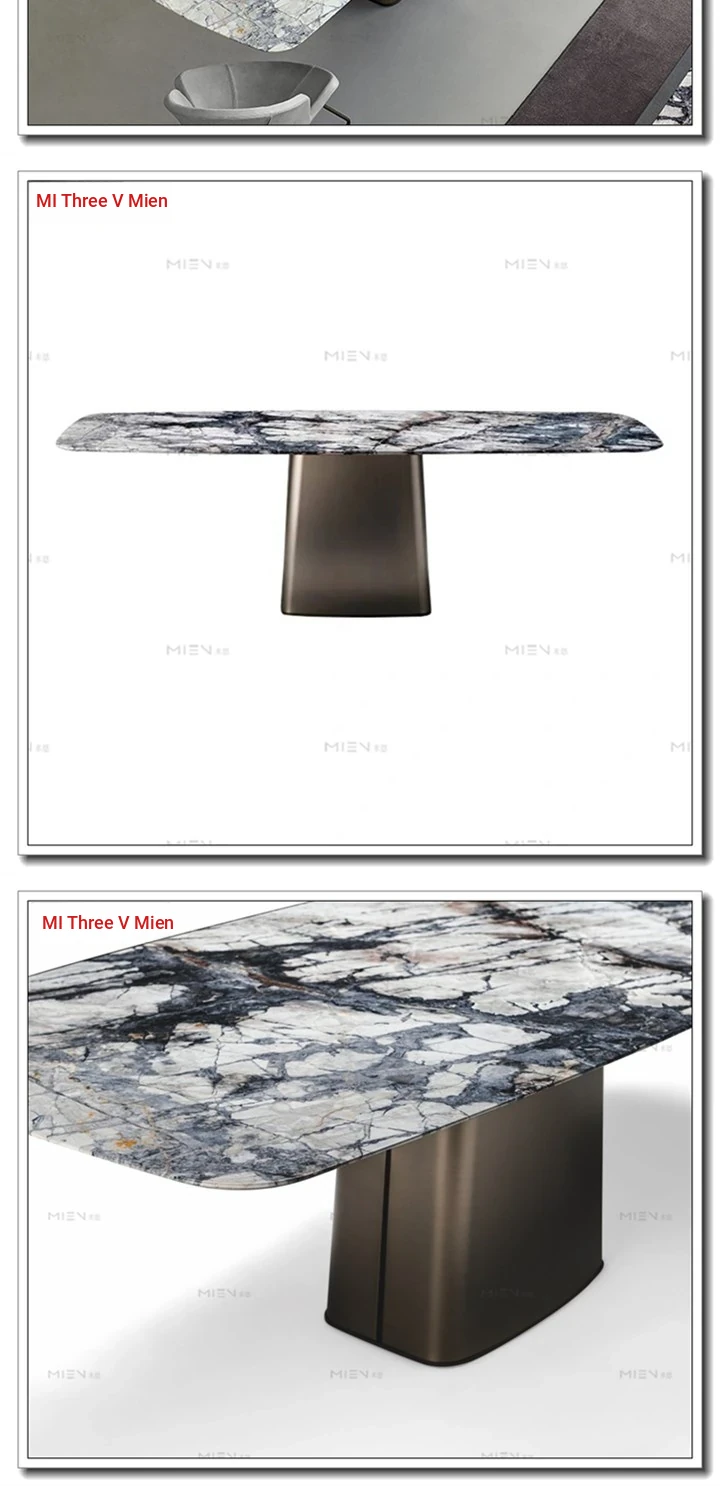 Elegant American Style Rectangular Marble Dining Table with Stainless Steel Frame - Perfect Reception Desk for Villas and Showrooms