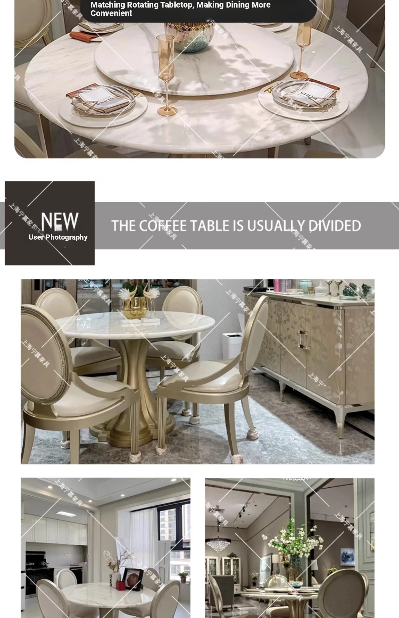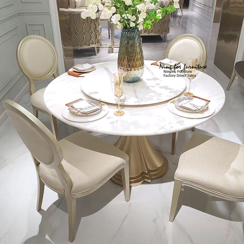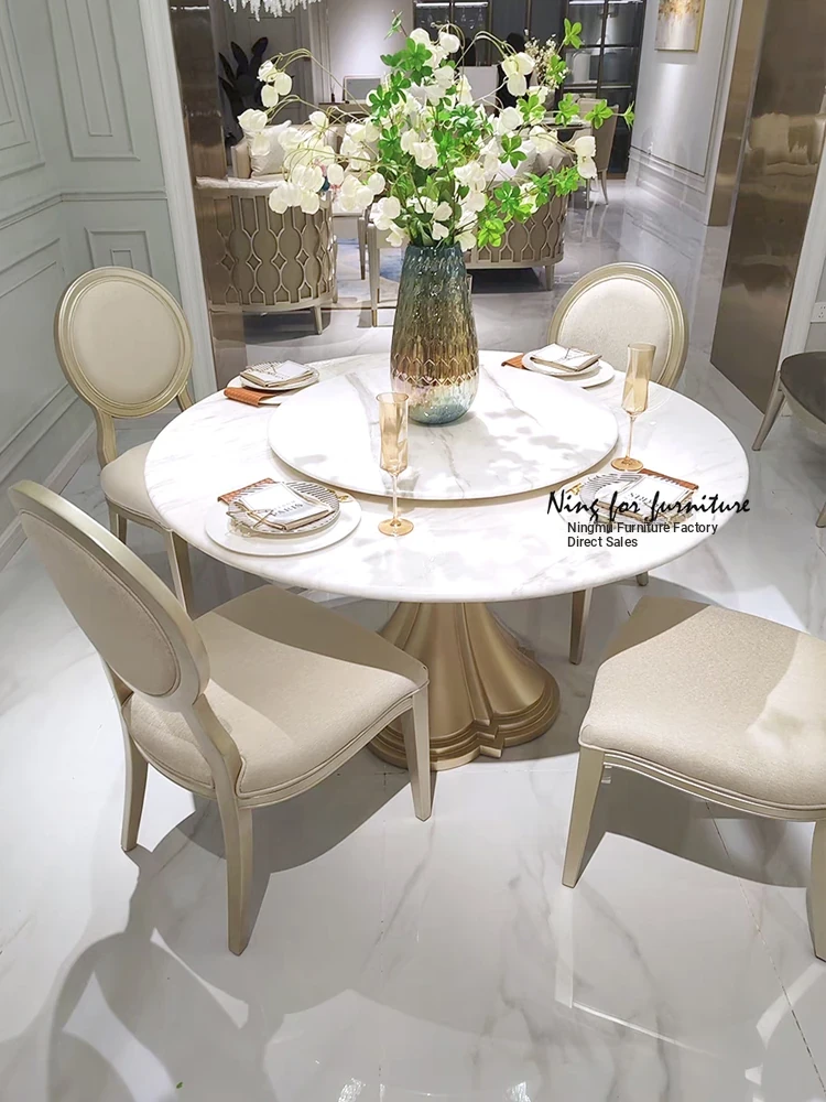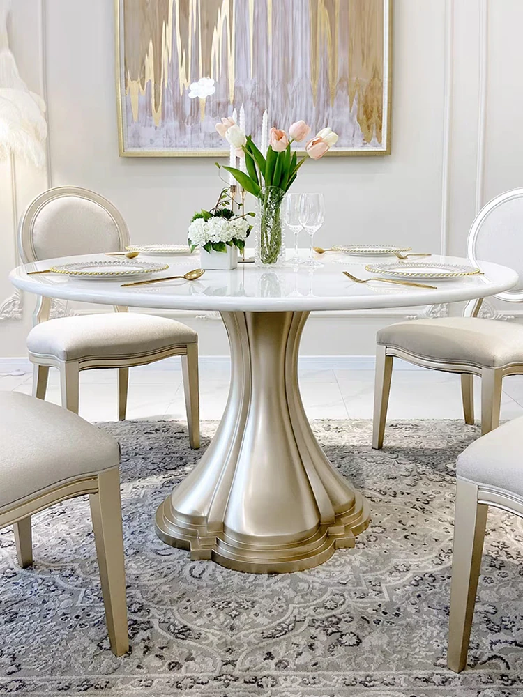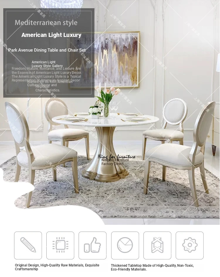 Elegant American-style Marble Round Dining Table Set for Small Spaces - Includes One Table and Four Chairs, Perfect for Home and Dining Room, French-inspired Design.