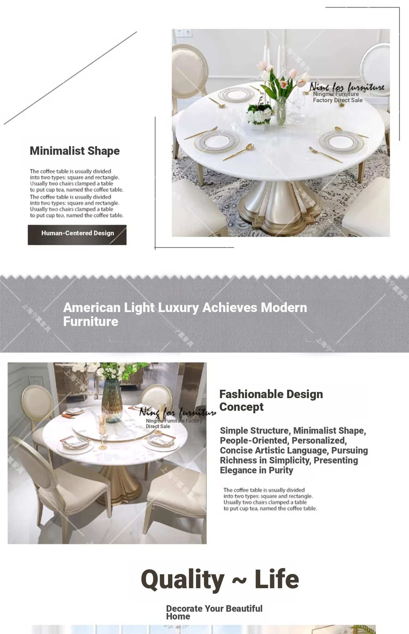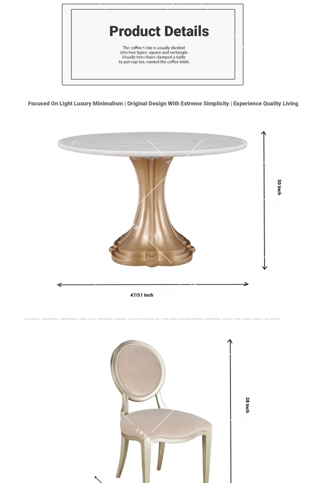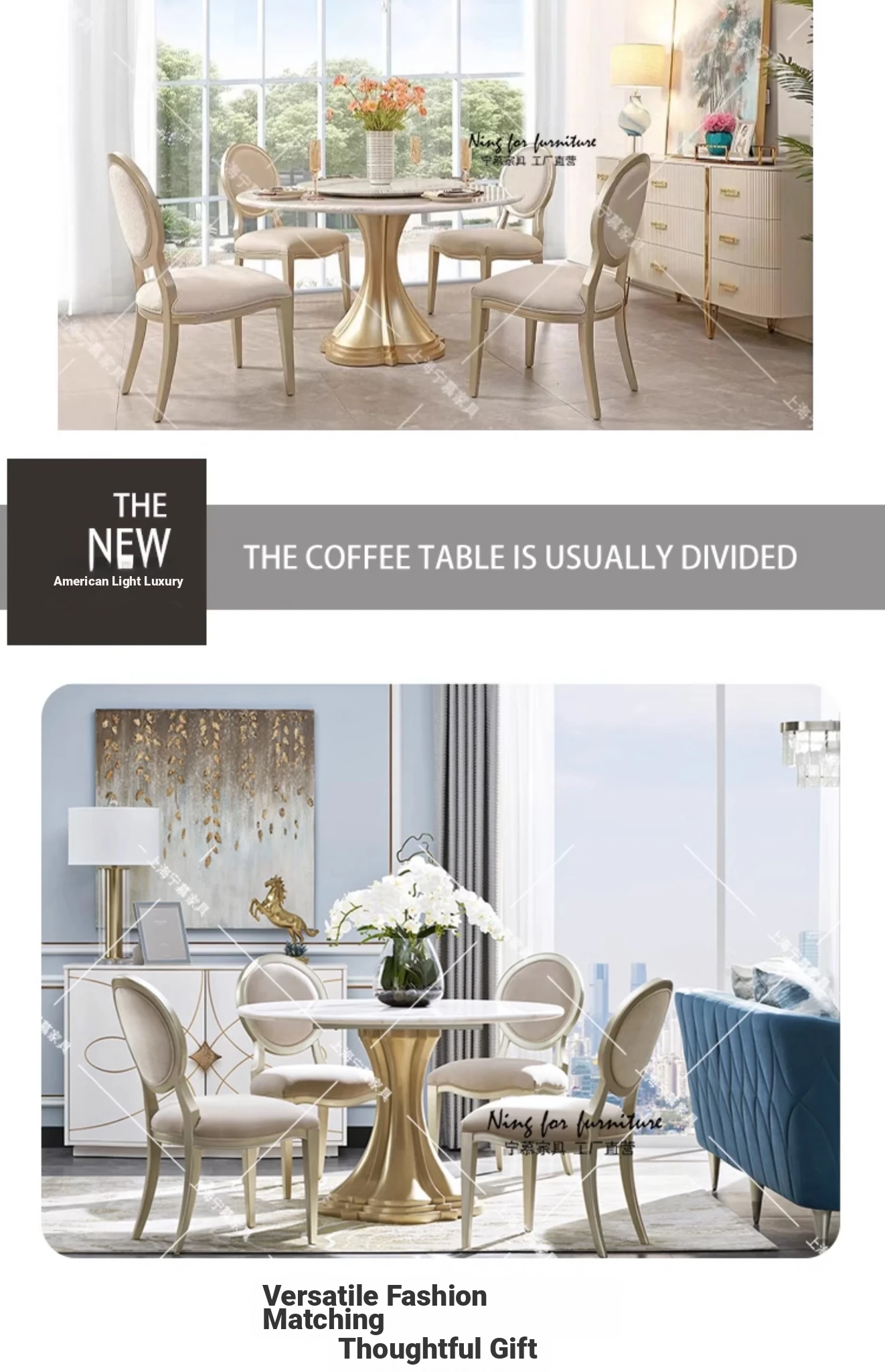 Elegant American-style Marble Round Dining Table Set for Small Spaces - Includes One Table and Four Chairs, Perfect for Home and Dining Room, French-inspired Design.