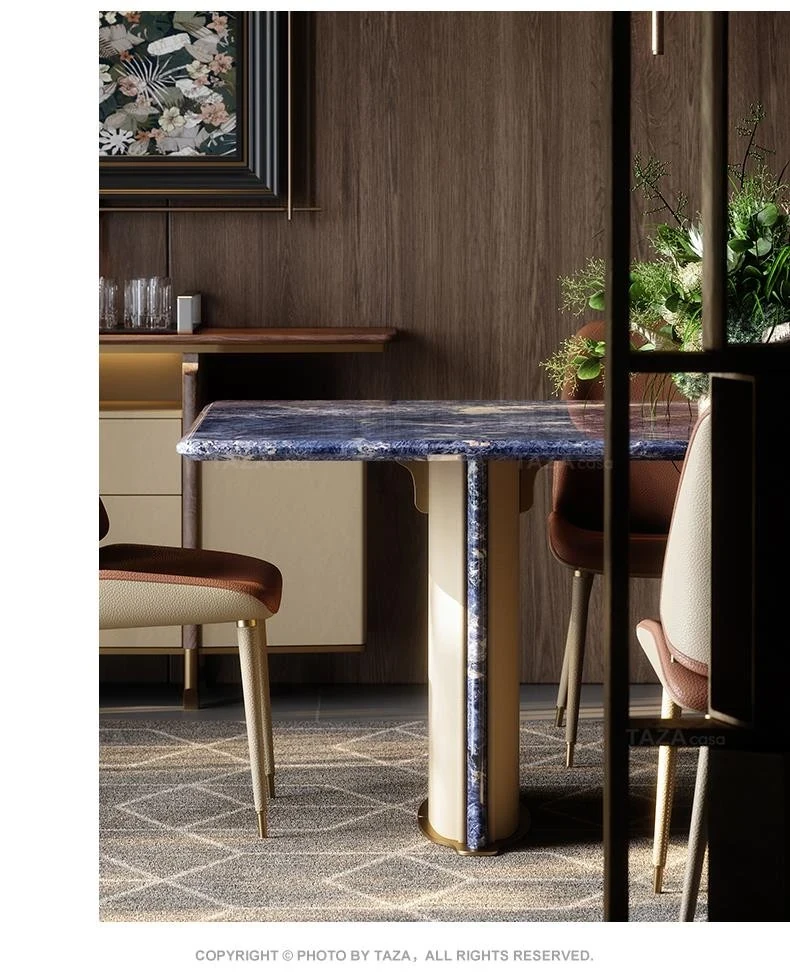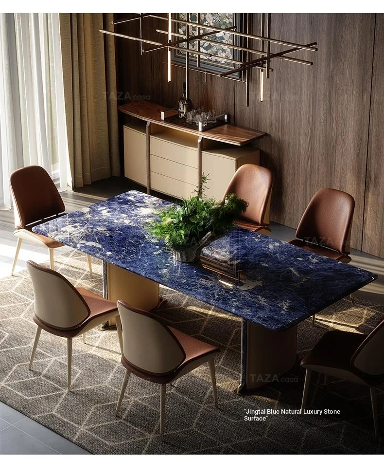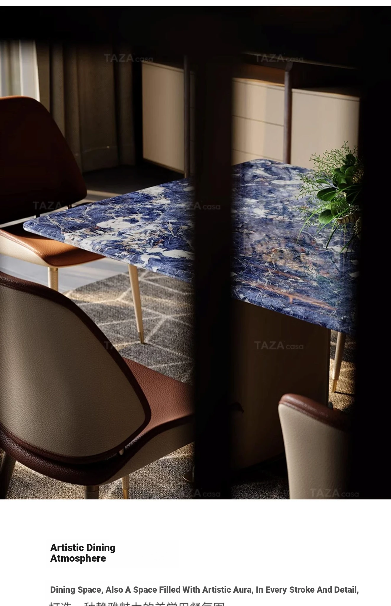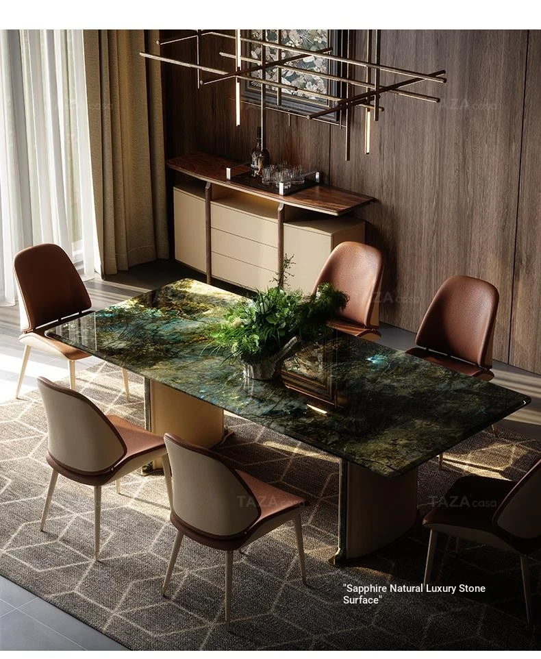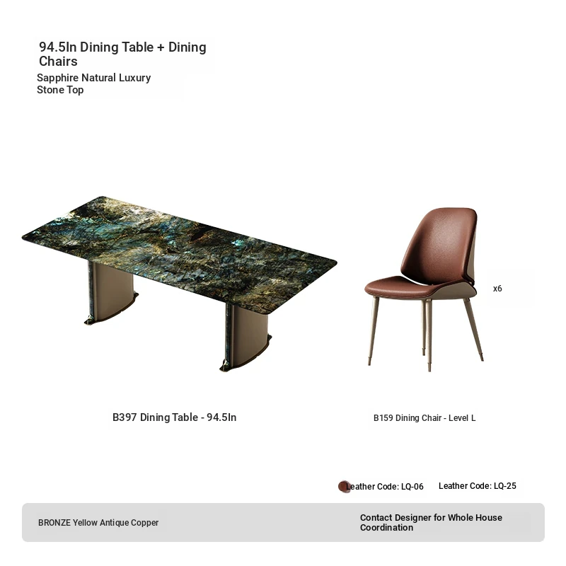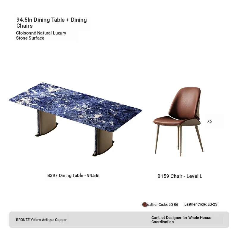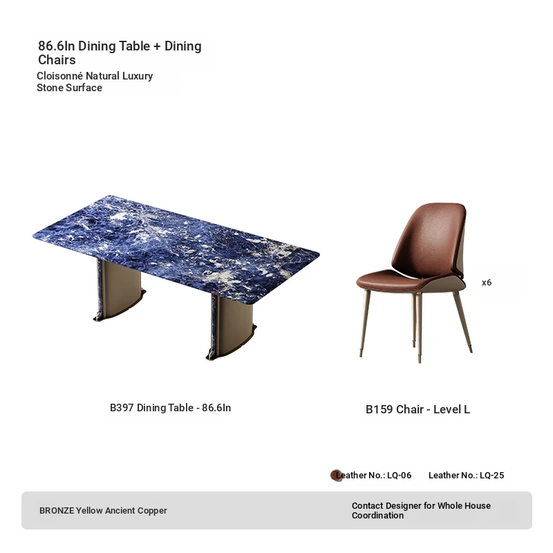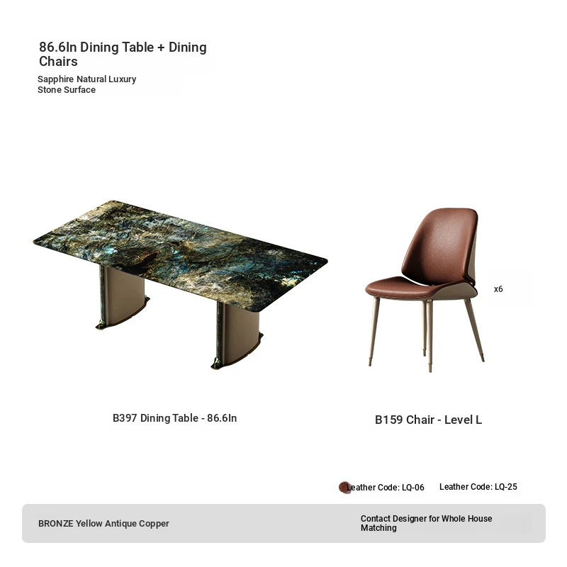 86.61in dining table [cloisonne luxury stone] + B159 dining chair [L grade full green leather] * 6
