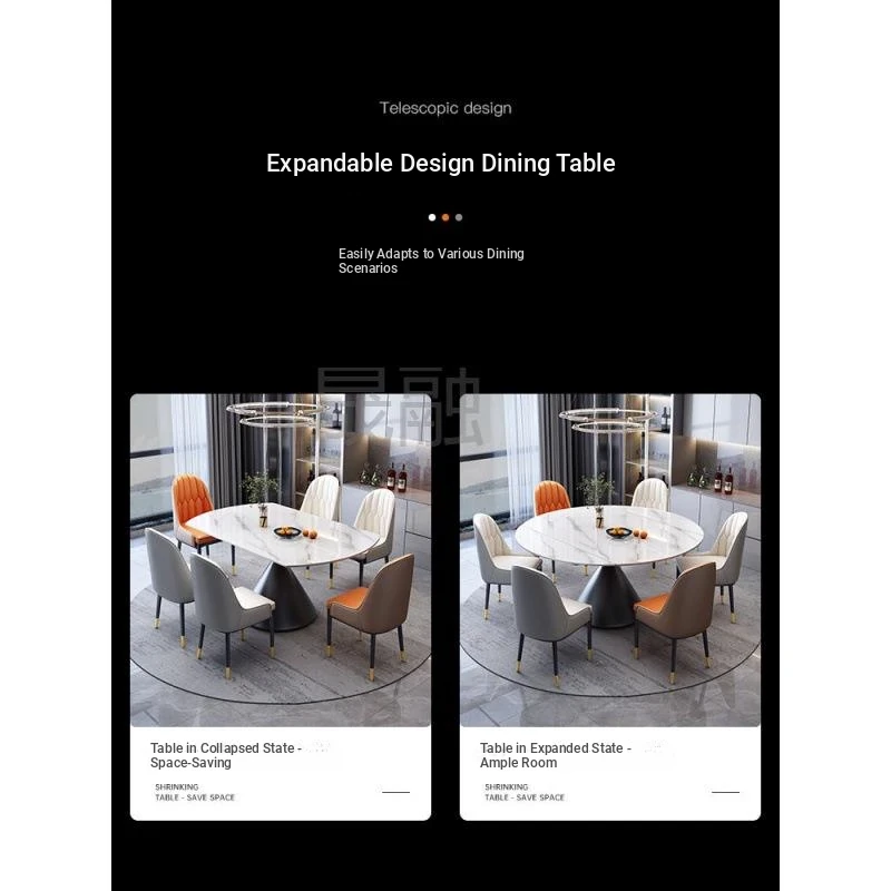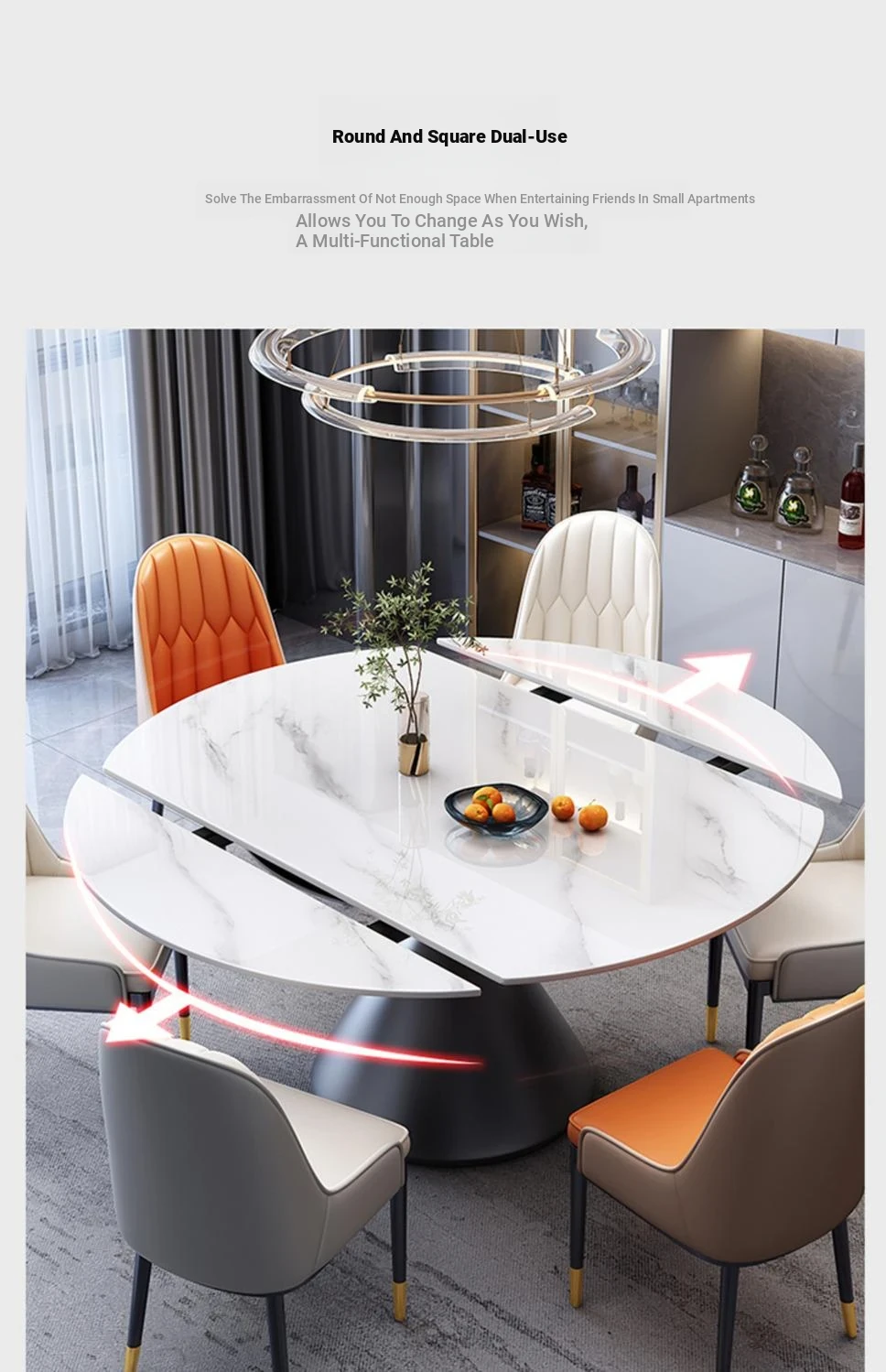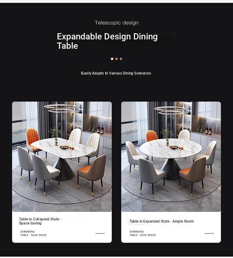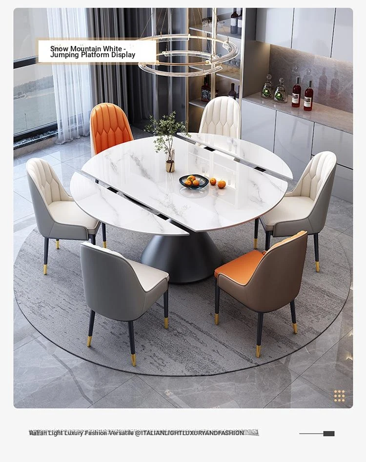Elegant Italian-Style Rotating Glossy Rock Plate Dining Table and Chair Set - Expandable Square and Round Design for Small Home Spaces