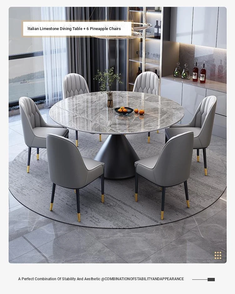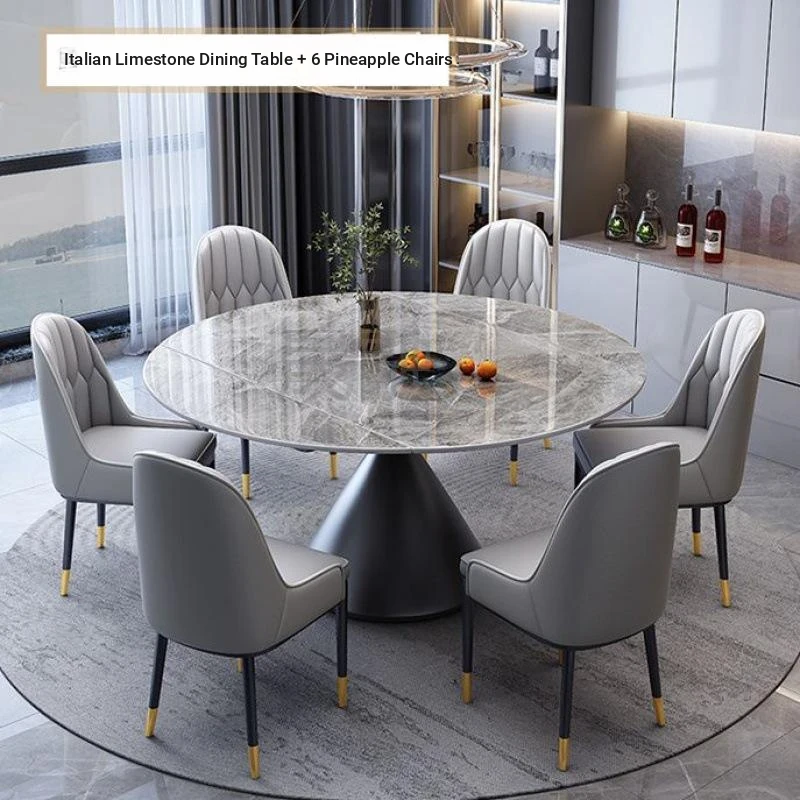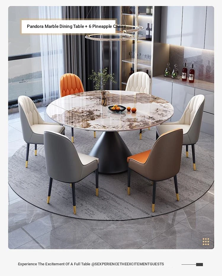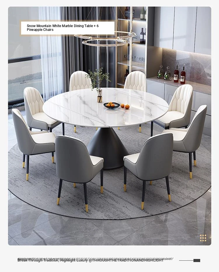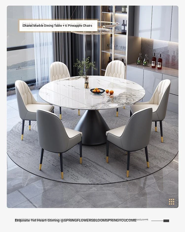 Elegant Italian-Style Rotating Glossy Rock Plate Dining Table and Chair Set - Expandable Square and Round Design for Small Home Spaces