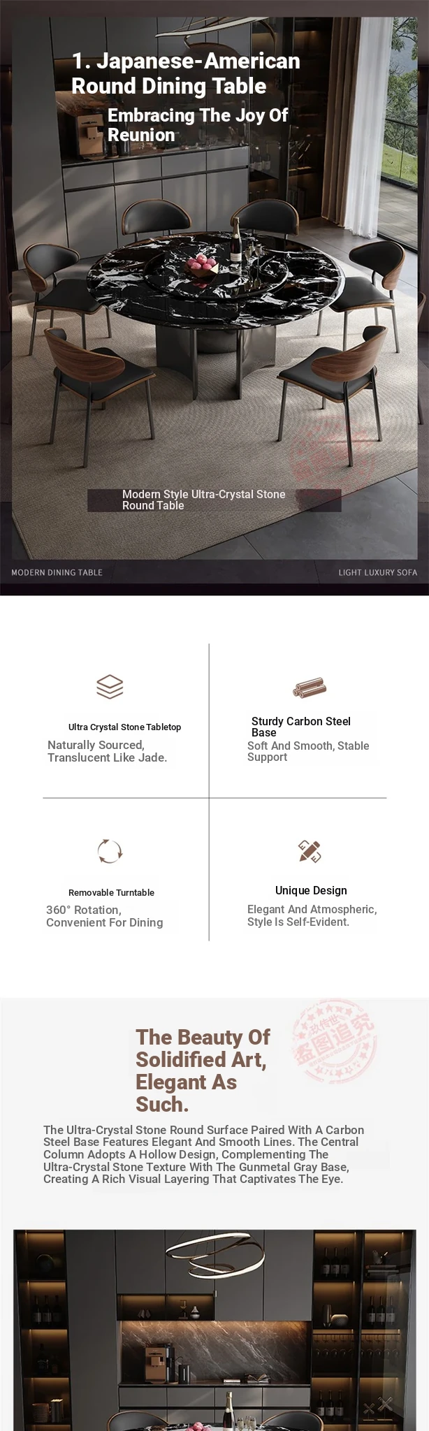 853# Super Crystal Stone Round Table +6 Eames Chair