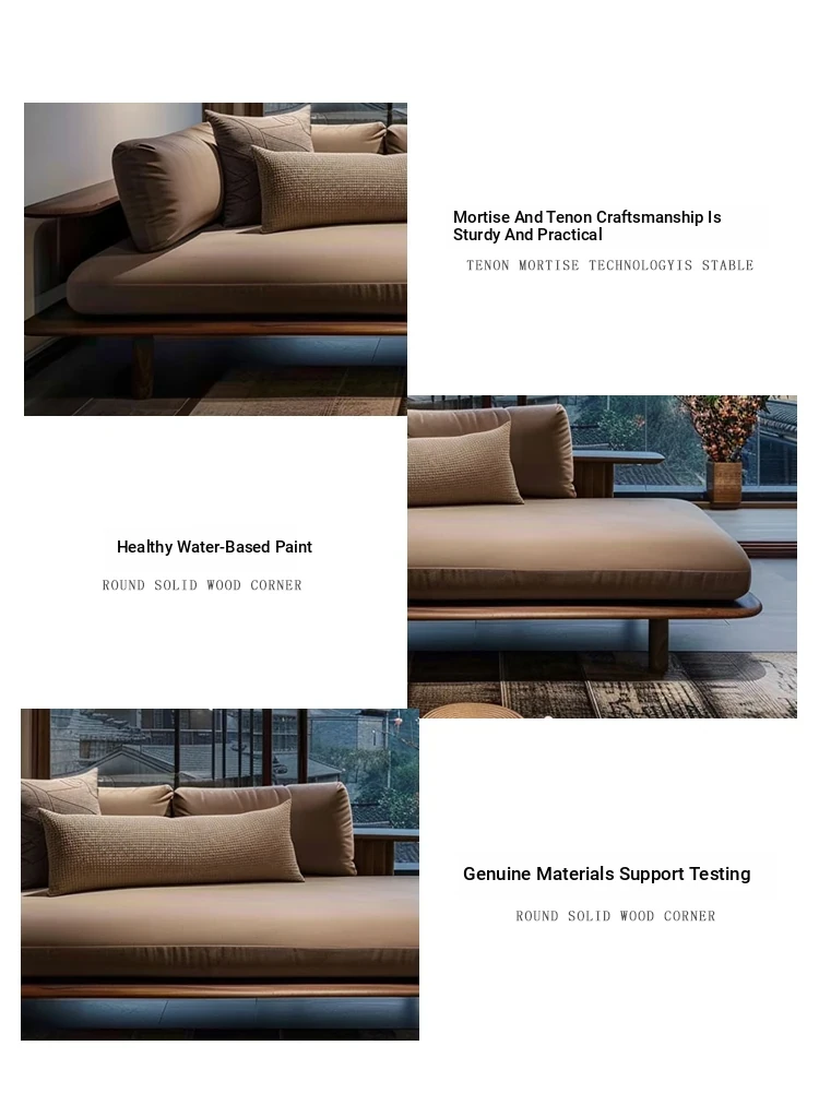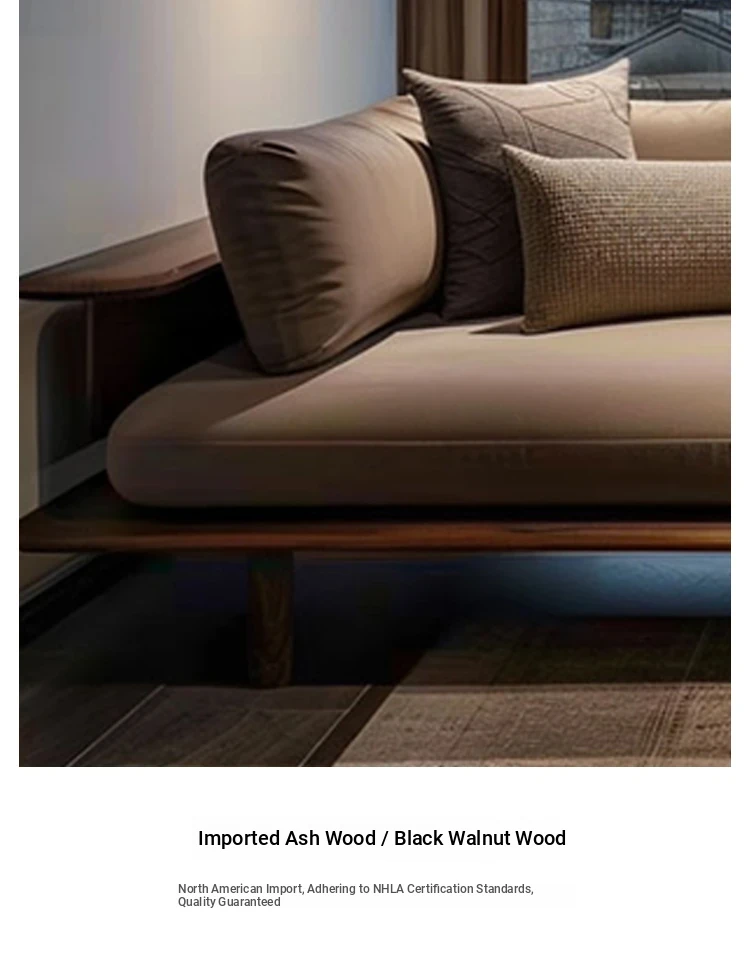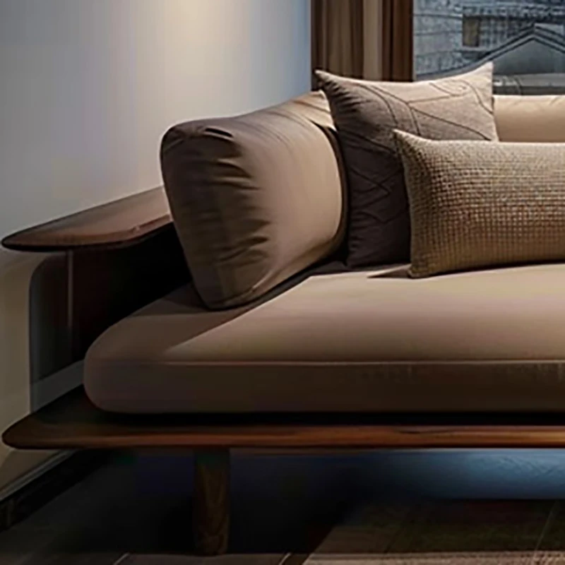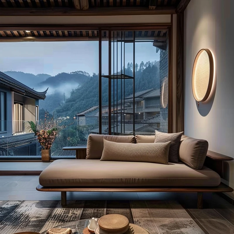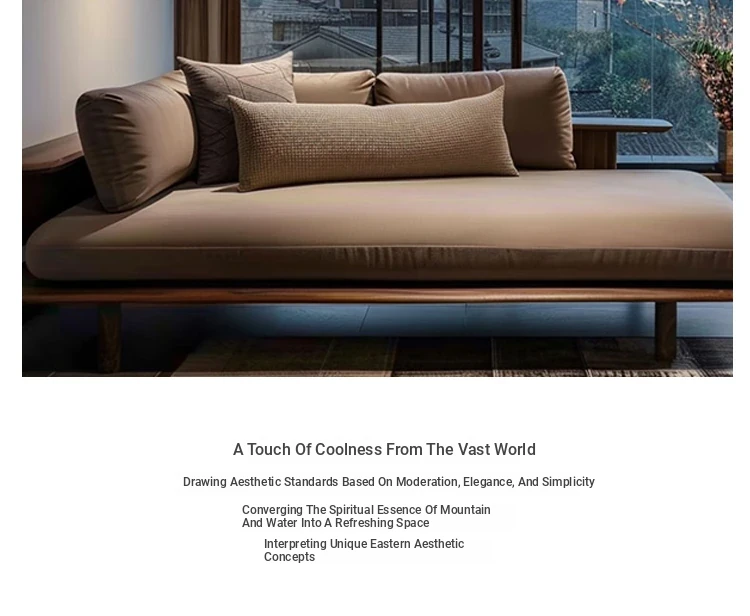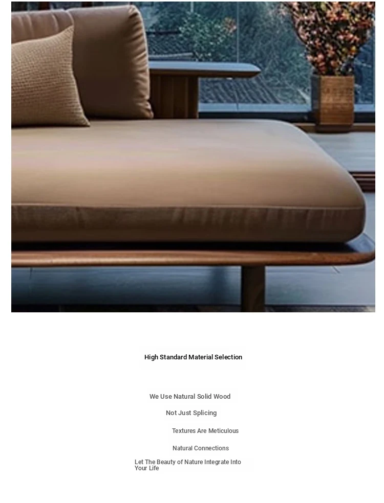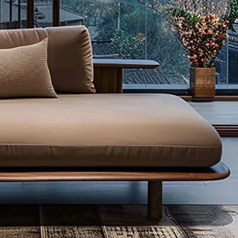 Elegant New Chinese Style Black Walnut and Ash Wood Chaise Lounge - Zen-Inspired Beauty Bed for Living Room, Hotel, Airbnb, and Office. Perfect for Relaxation and Aesthetic Appeal.
