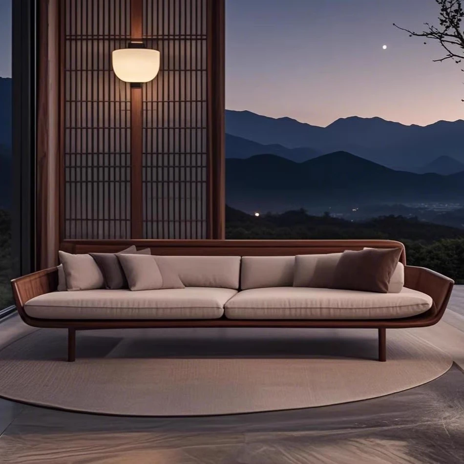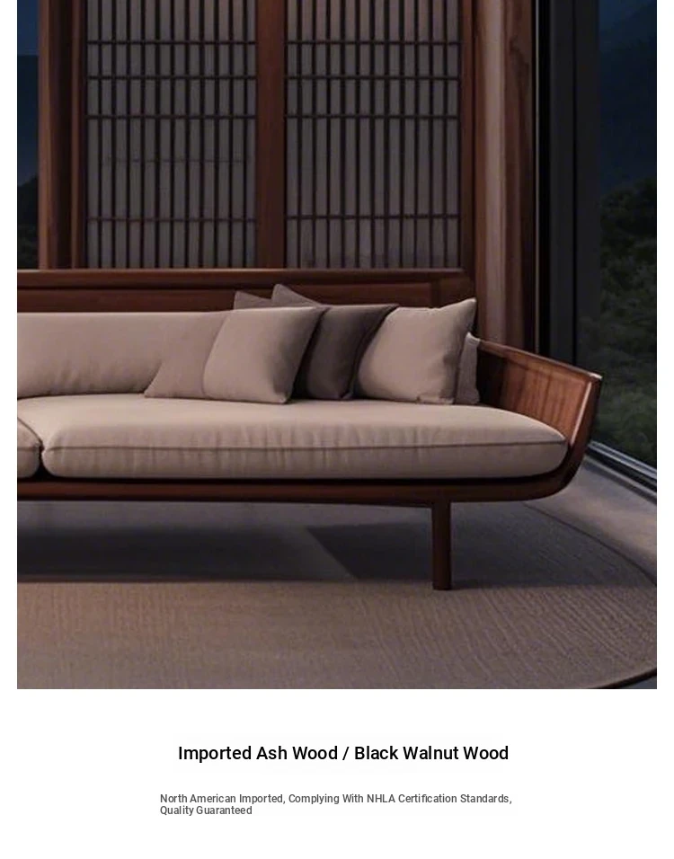 Elegant New Chinese Style White Ash and Black Walnut Sofa – Luxurious Solid Wood Leisure Furniture for Living Rooms, Guesthouses, and Offices. Perfect Blend of Comfort and Aesthetics!