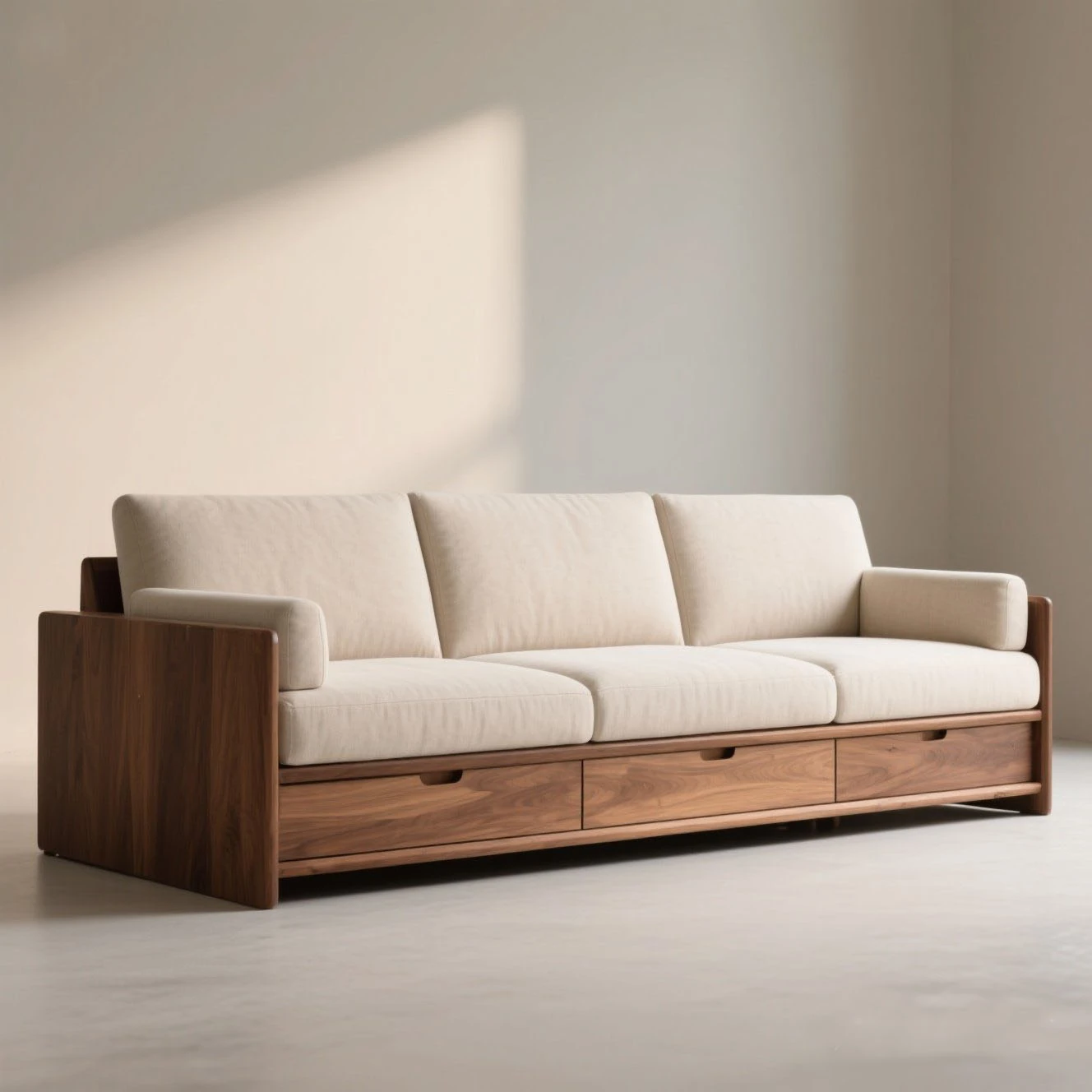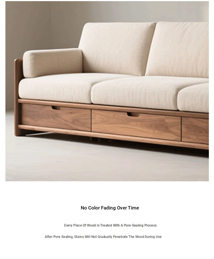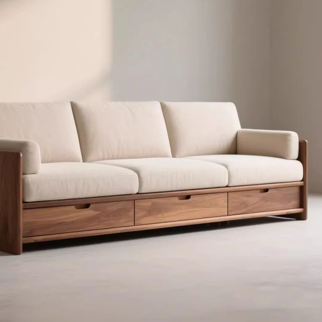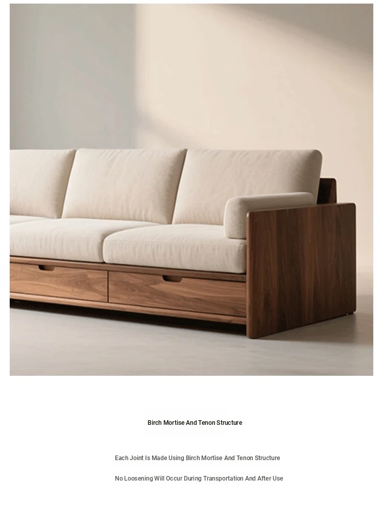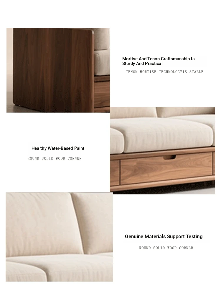Elegant New Chinese Zen Style White Ash Wood Sofa - High-End Luxe for Home Living Room, Featuring North American Black Walnut Solid Wood - Perfect for Contemporary Comfort and Aesthetic Appeal.