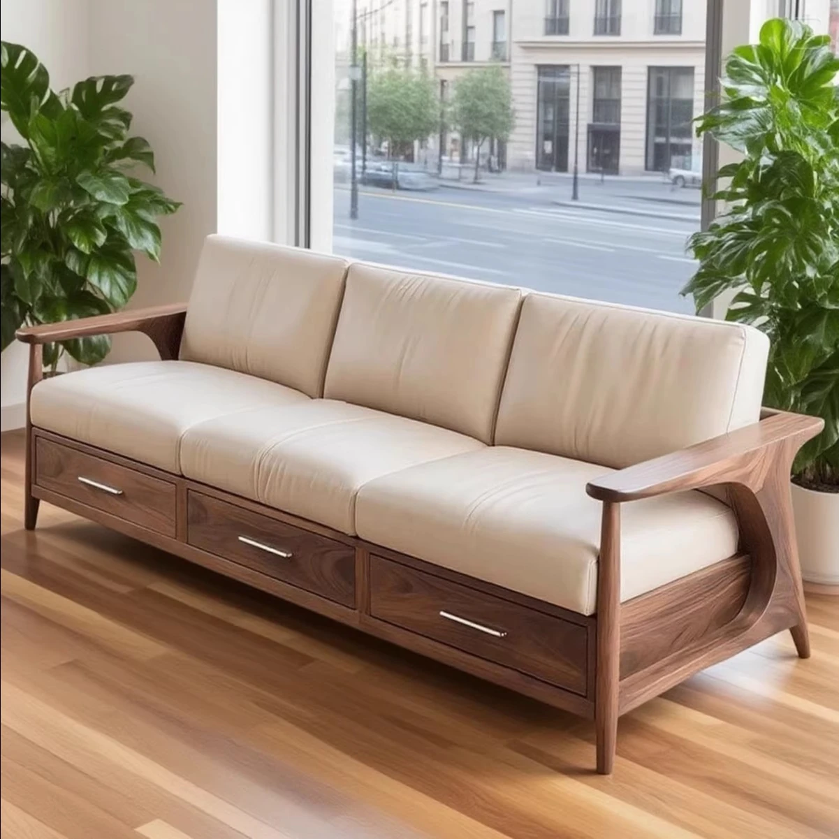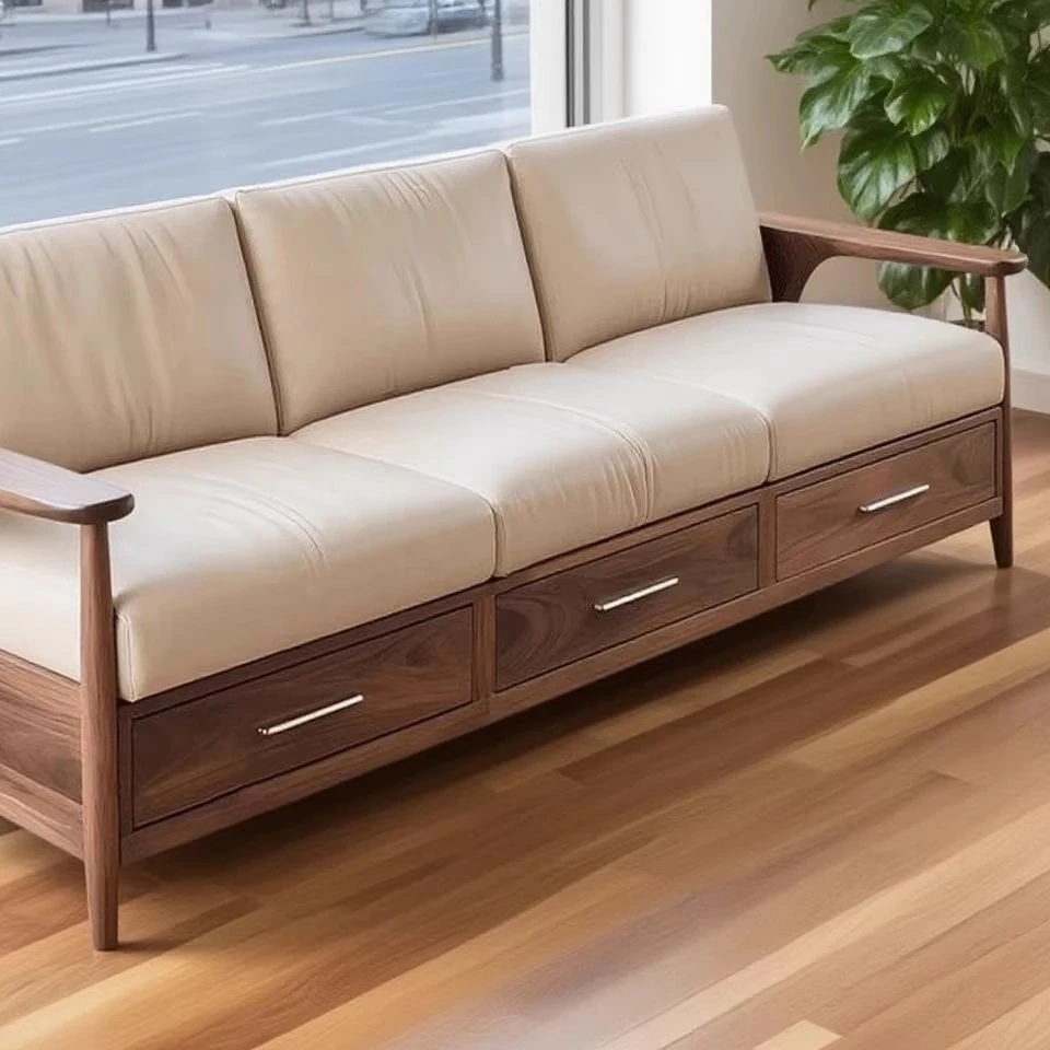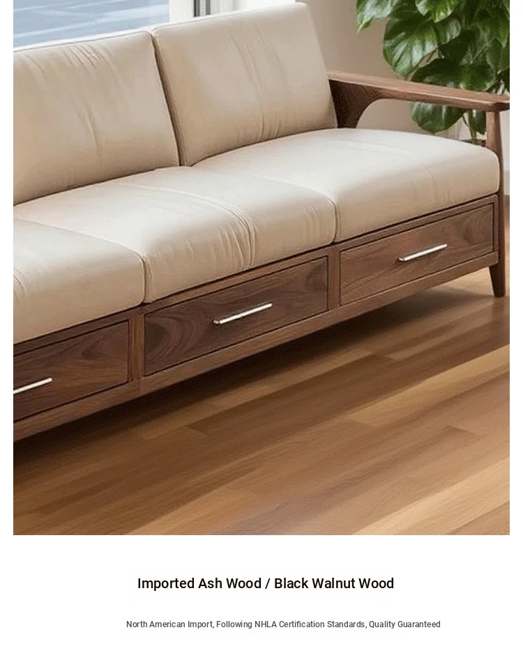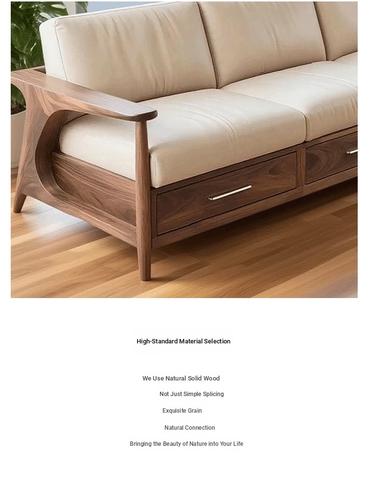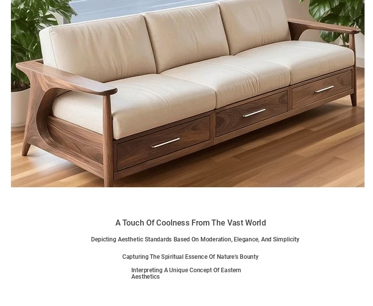 Elegant New Chinese Zen-Style White Ash Wood Sofa - Premium Light Luxury for Home Living Room, Featuring Solid North American Black Walnut Wood - A Perfect Blend of Style and Comfort