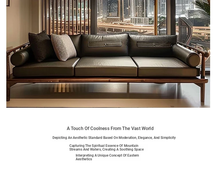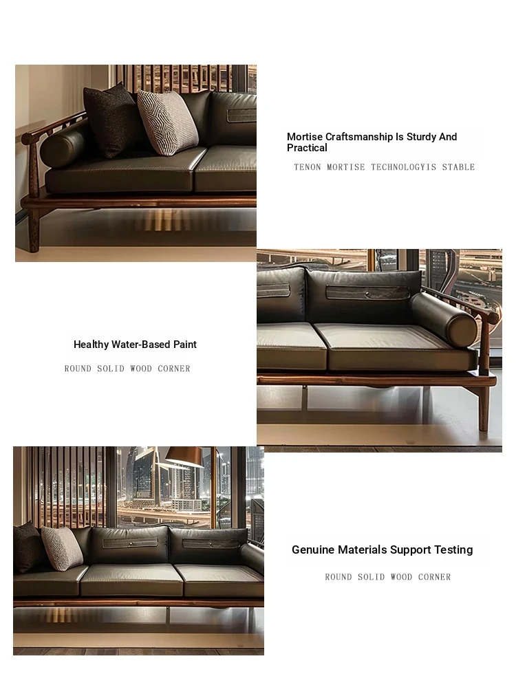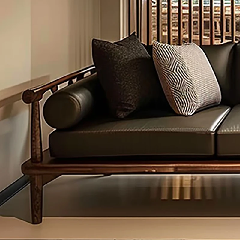Elegant Zen-Inspired New Chinese Style Sofa for Luxury Living Rooms - Crafted from Premium Black Walnut and Ash Wood, Perfect for Hotels, Guesthouses, and Office Lounges - Exquisite Solid Wood Furniture