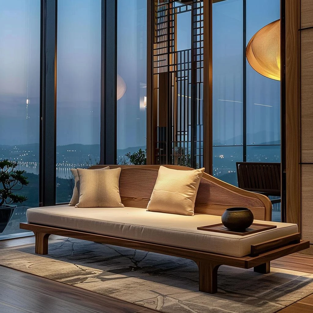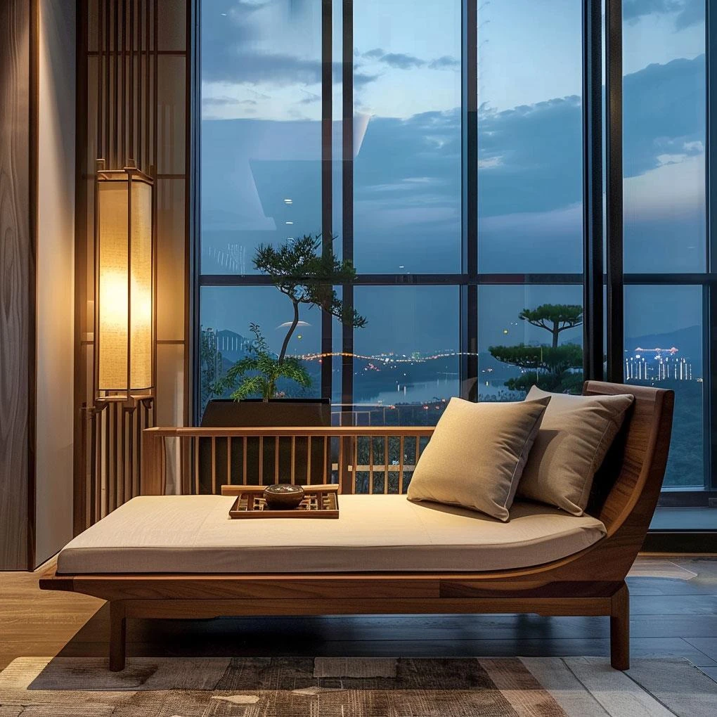 Elegant Zen-Style Black Walnut and Ash Wood Chaise Lounge - Perfect for Living Rooms, Hotels, Guesthouses, and Offices. A Serene Addition to Your Space!