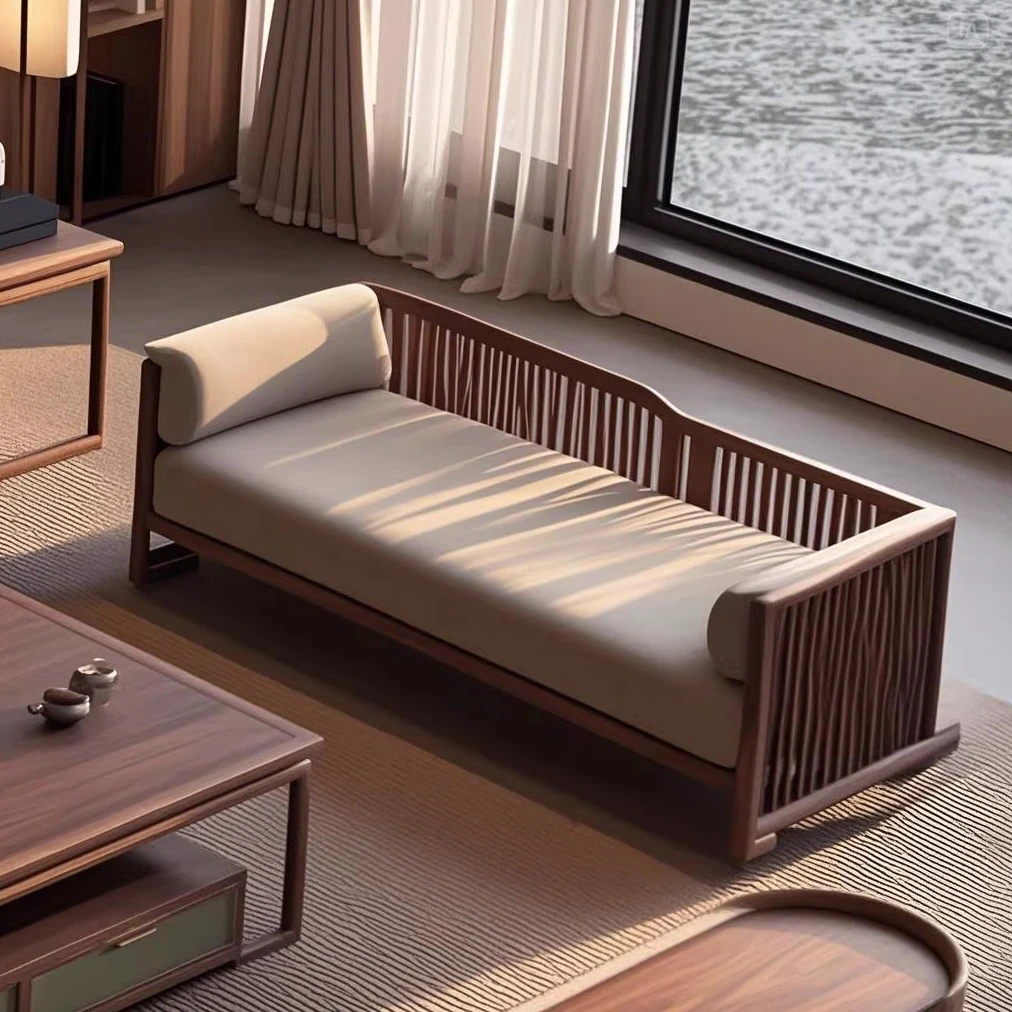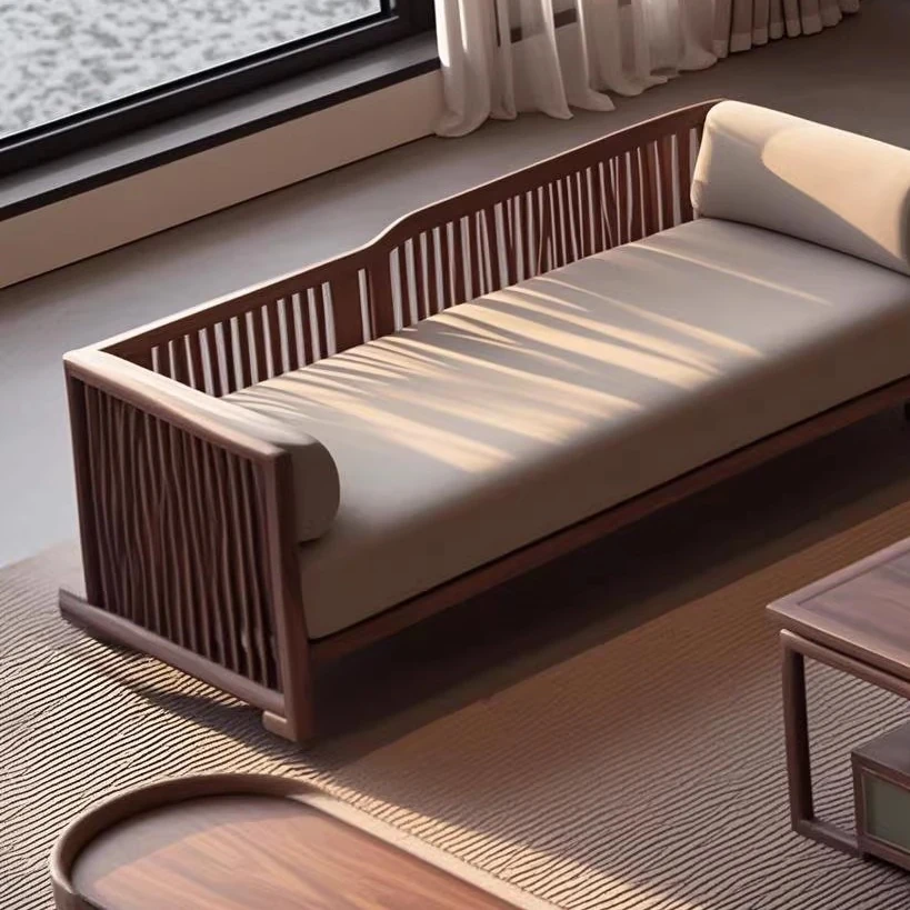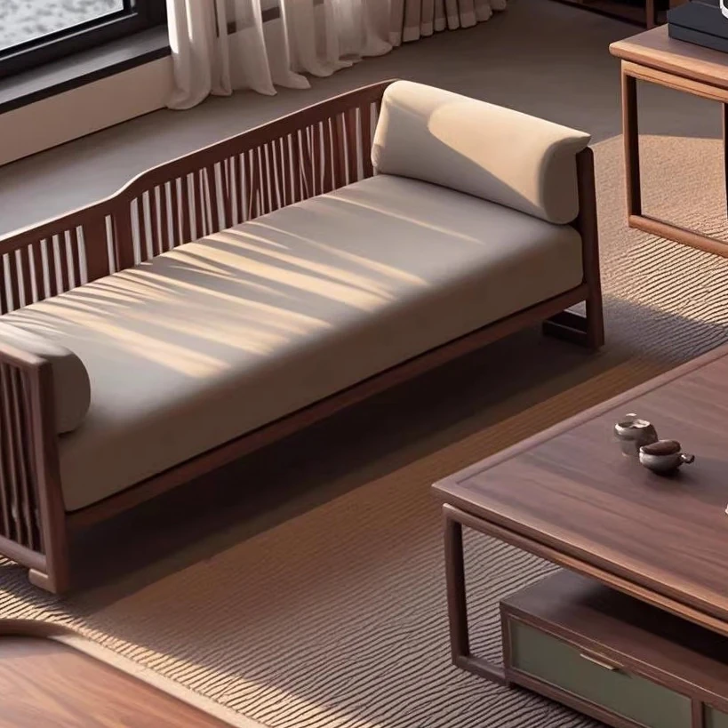 Elegant Zen-style White Wax Wood Sofa for Home, Living Room, Hotel, and B&B – Premium Solid North American Black Walnut Furniture