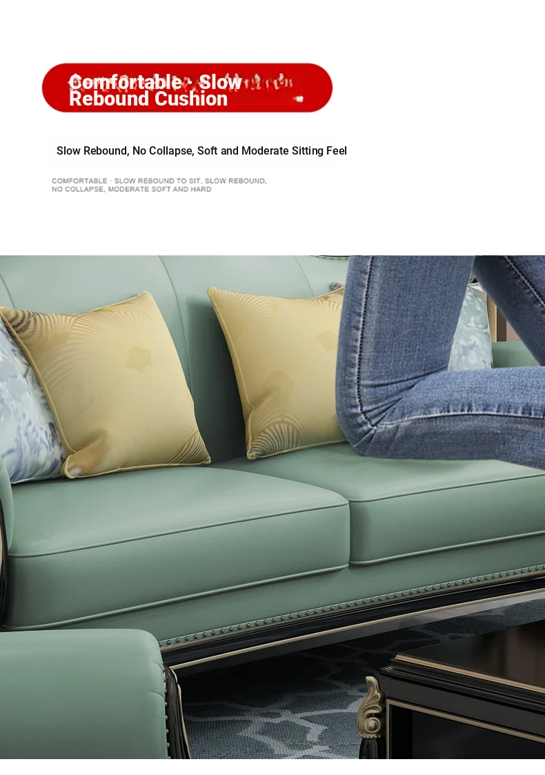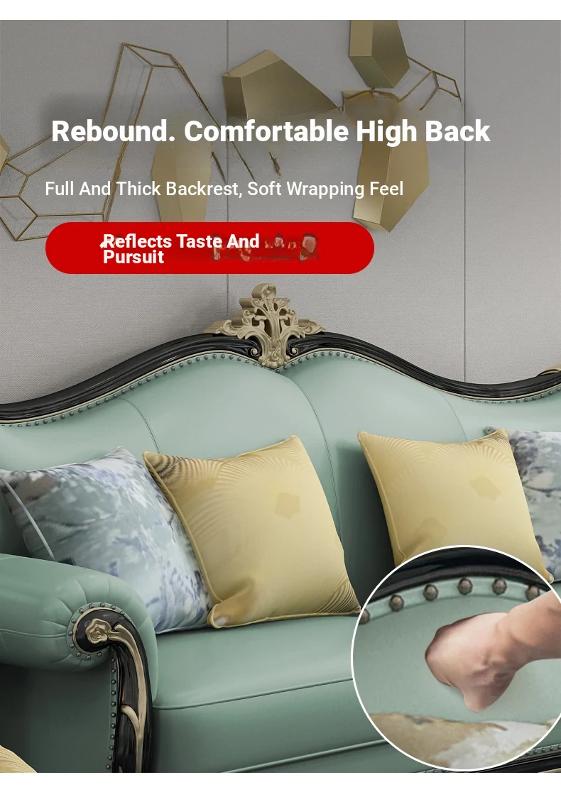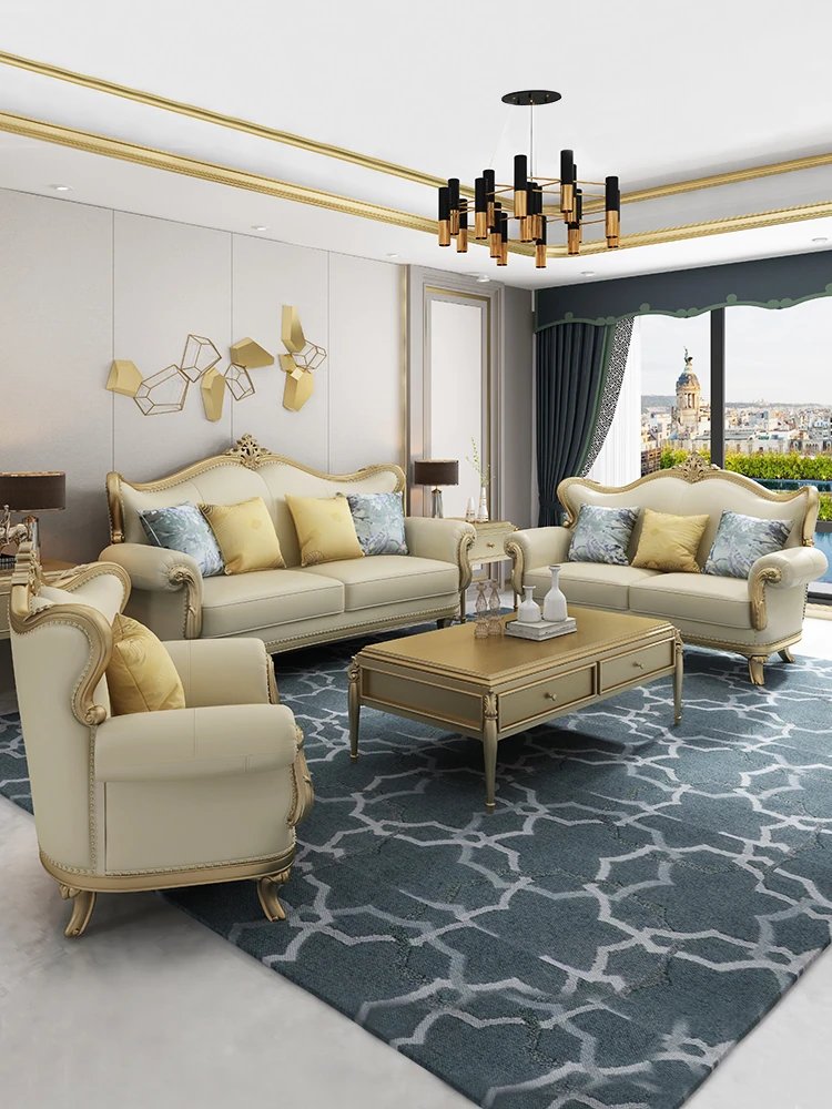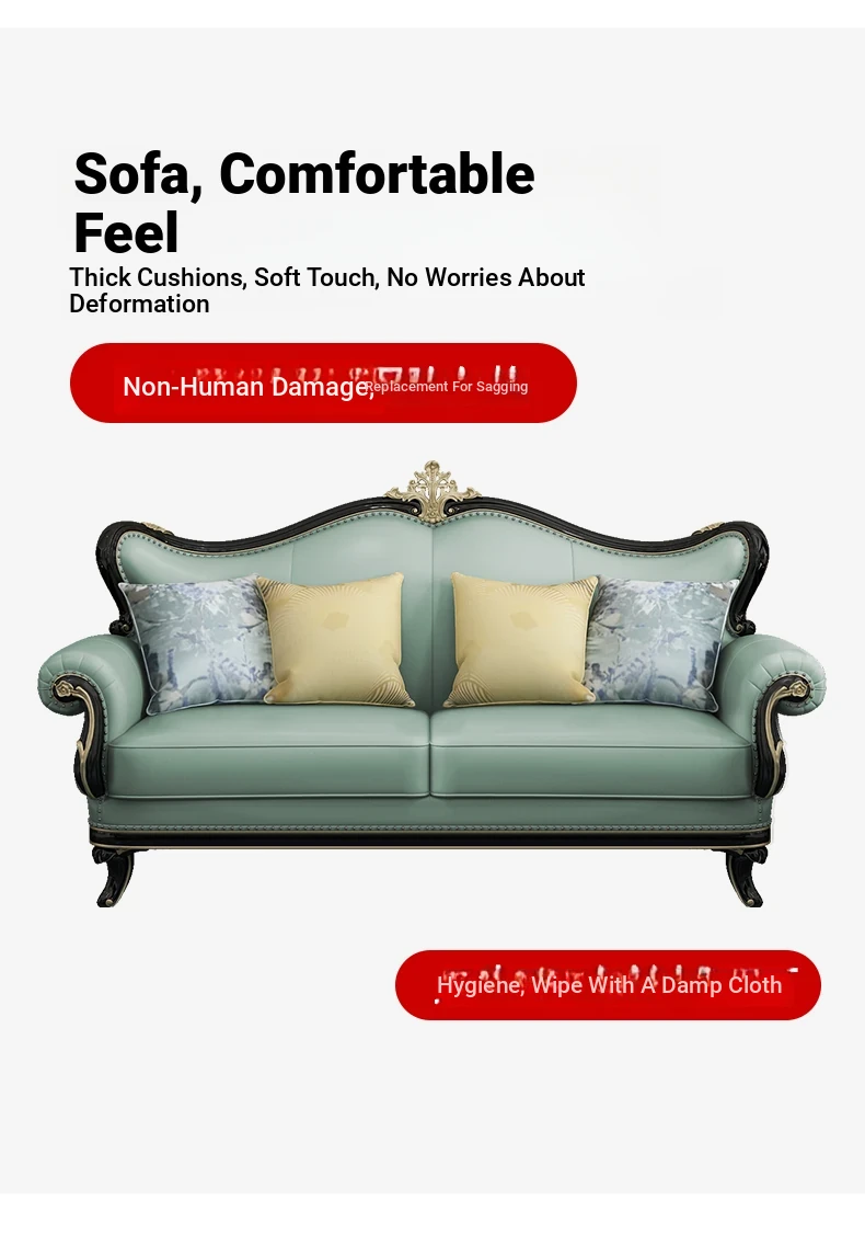 European Style Genuine Leather Sofa Set for Living Room - Solid Wood Carved Rustic Design, Perfect for Any Size Home, Premium American Villa Furniture