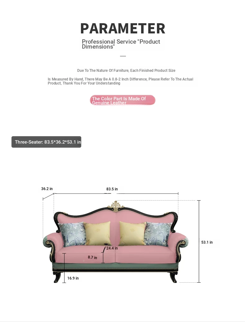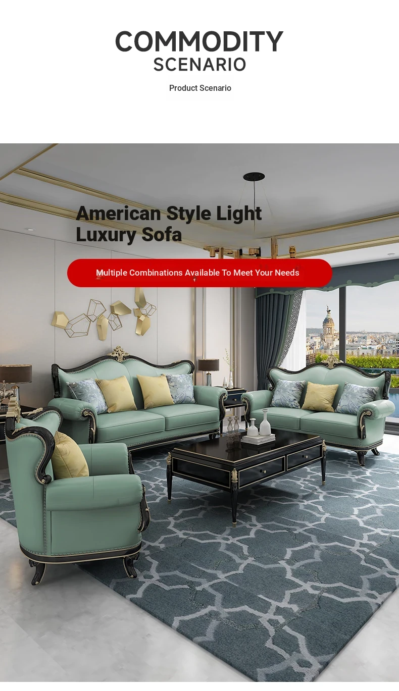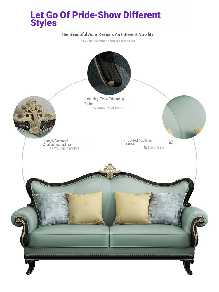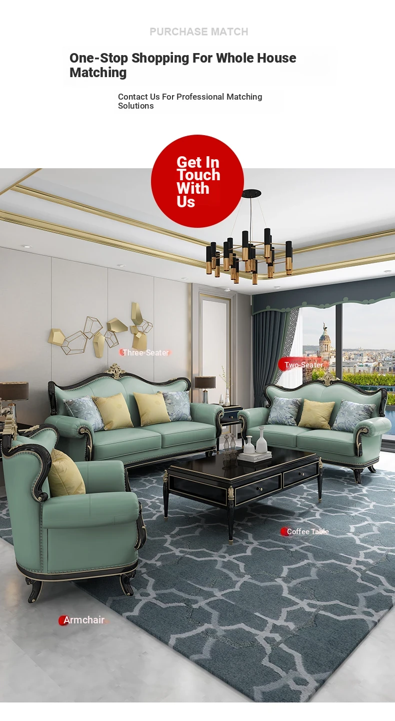 European Style Genuine Leather Sofa Set for Living Room - Solid Wood Carved Rustic Design, Perfect for Any Size Home, Premium American Villa Furniture