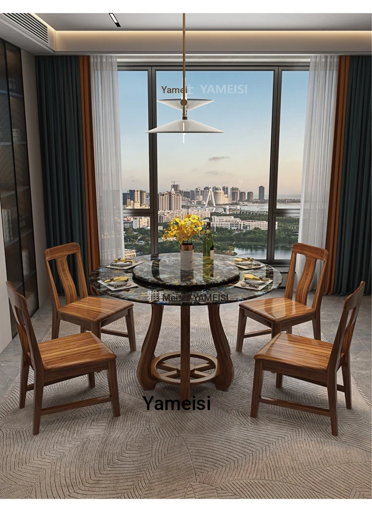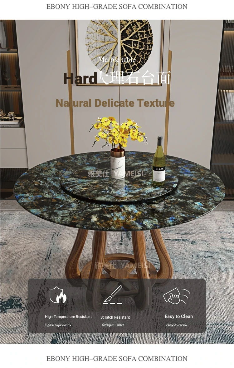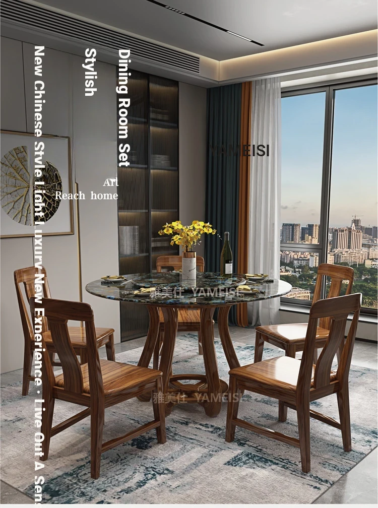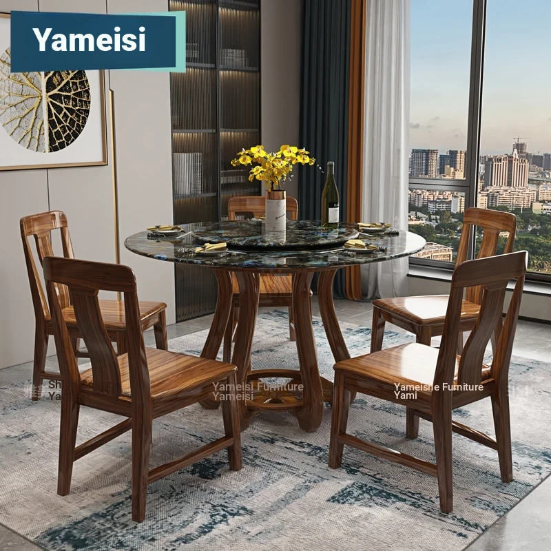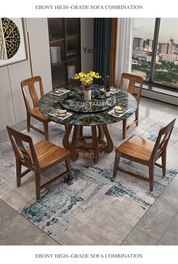 Foshan Luxury Blackwood Dining Table Set – Modern Minimalist Marble Round Dining Table for Spacious Homes, Elegant and High-End Design