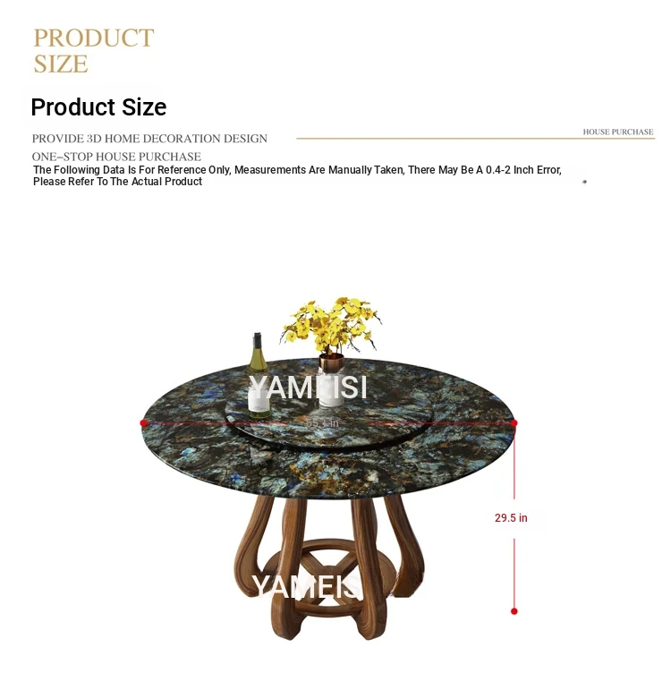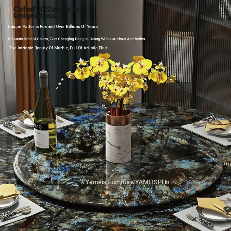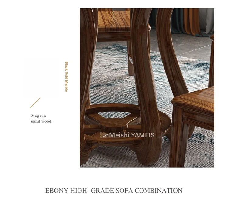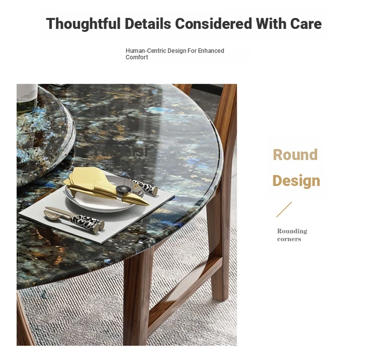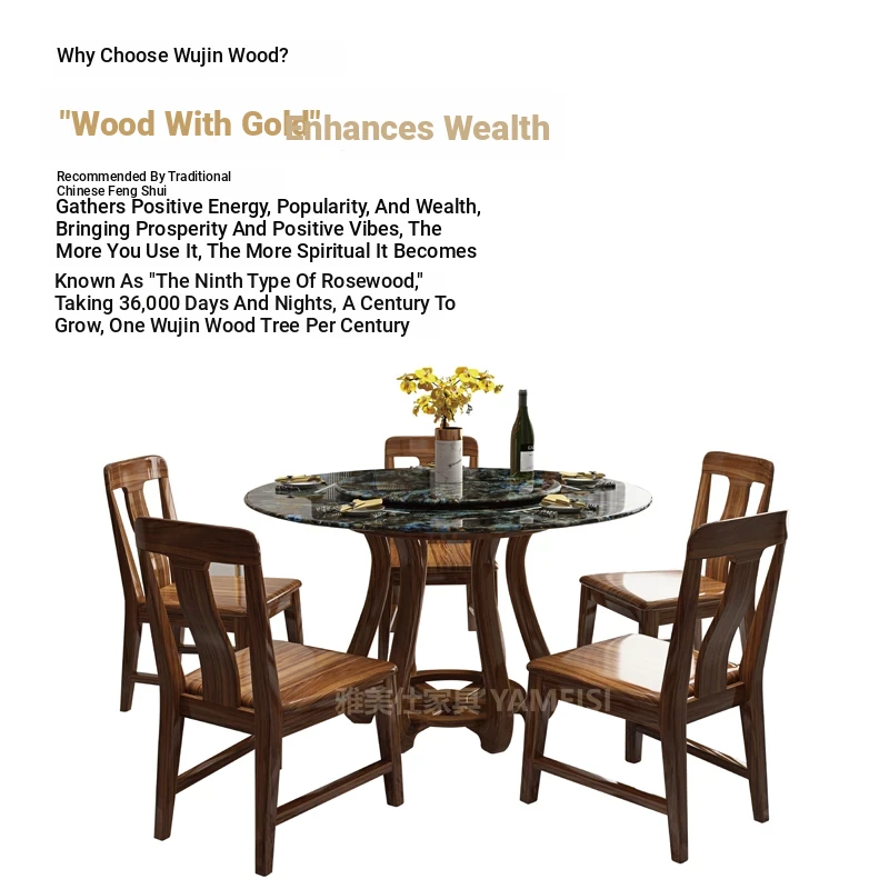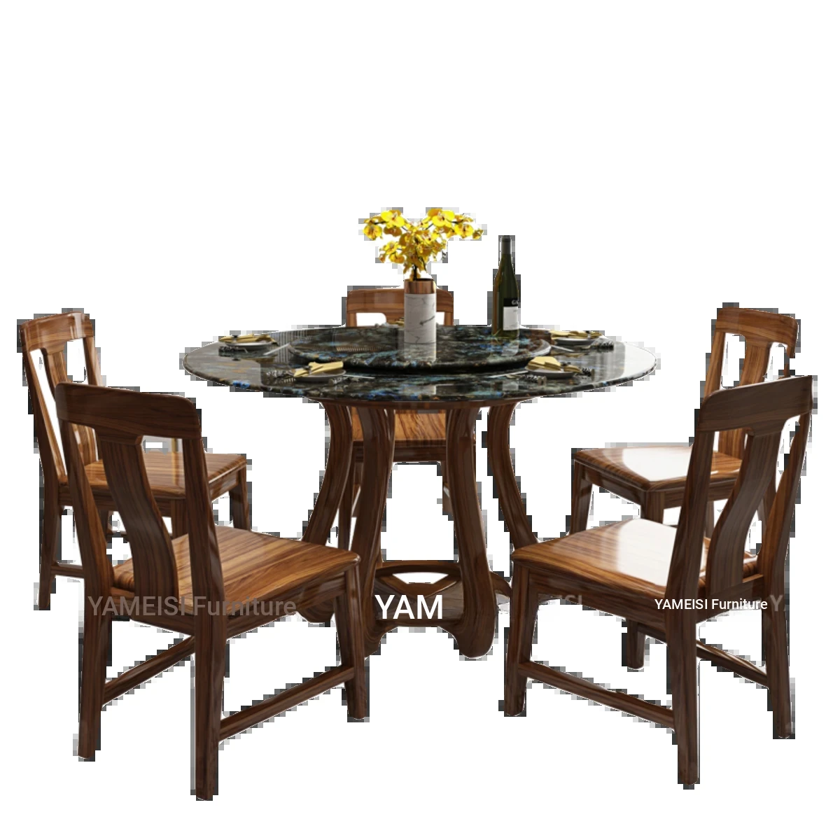 Foshan Luxury Blackwood Dining Table Set – Modern Minimalist Marble Round Dining Table for Spacious Homes, Elegant and High-End Design