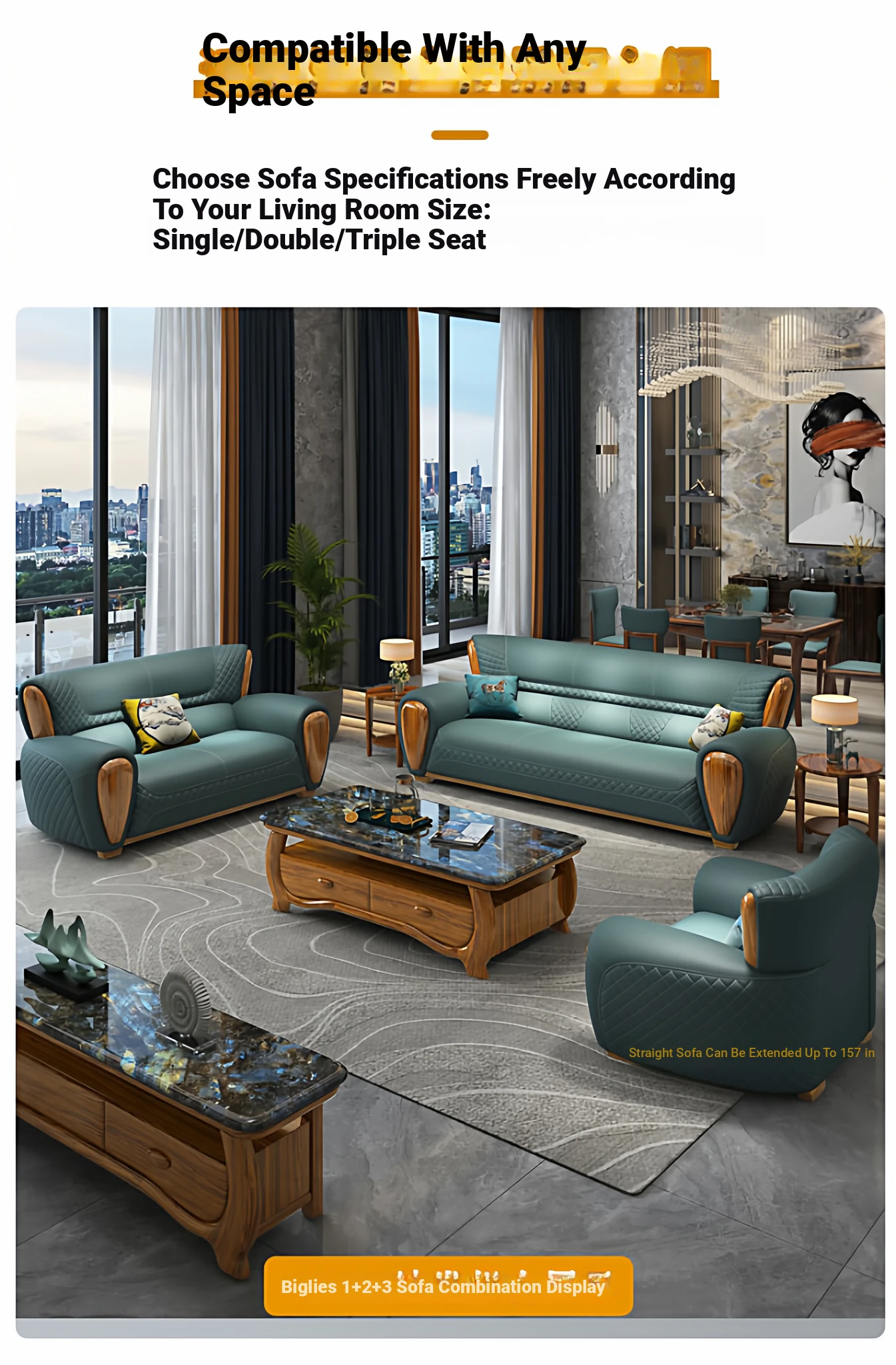 Straight row 118.11 ins [Ebony thickened 2.0 leather]]