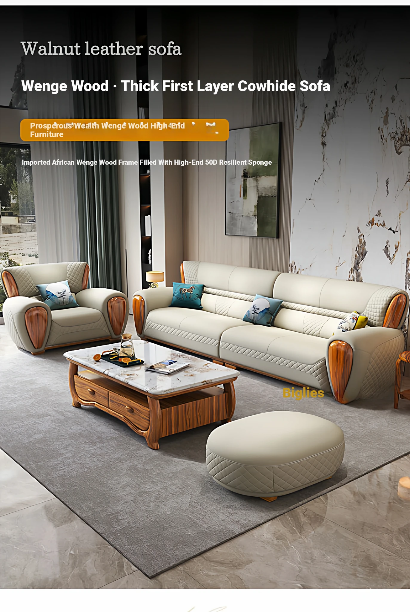 Leisure chair [ebony wood thickened 2.0 leather]]
