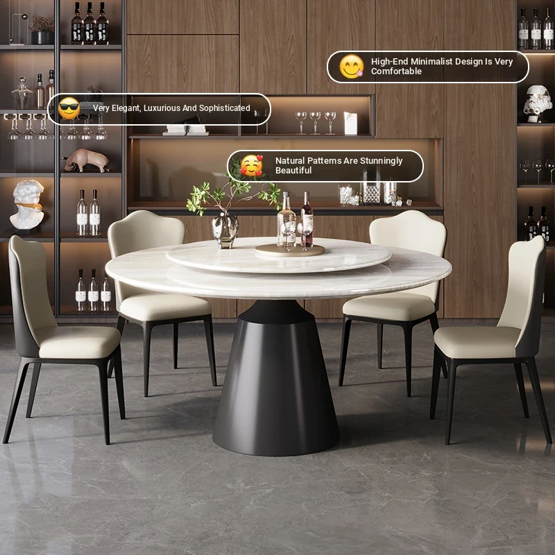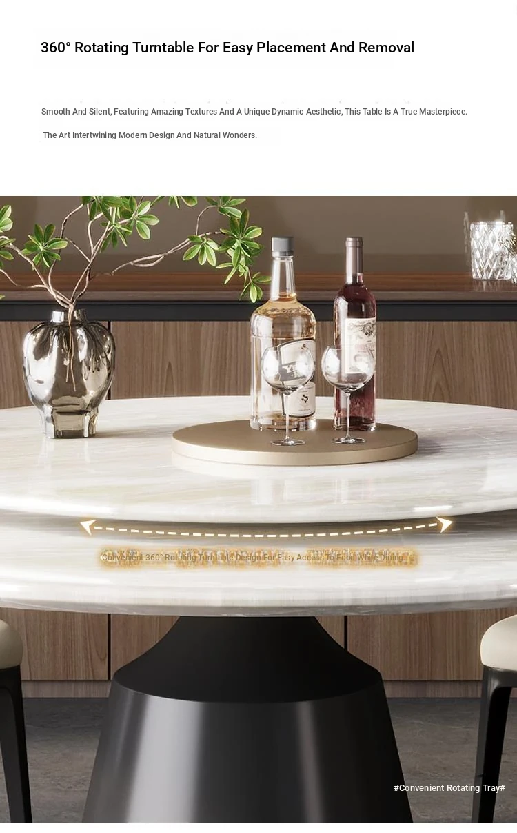 [Import] Cary Bingyu Natural Luxury Stone Dining Table 59.06in +0.8 Turntable