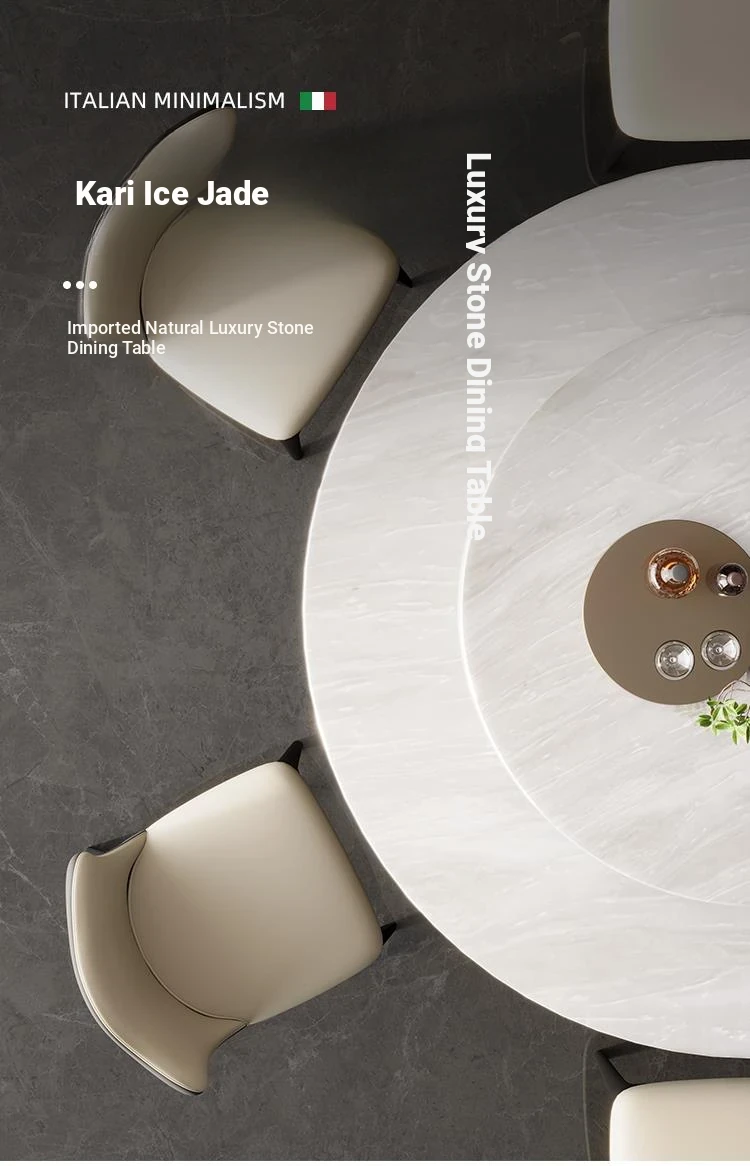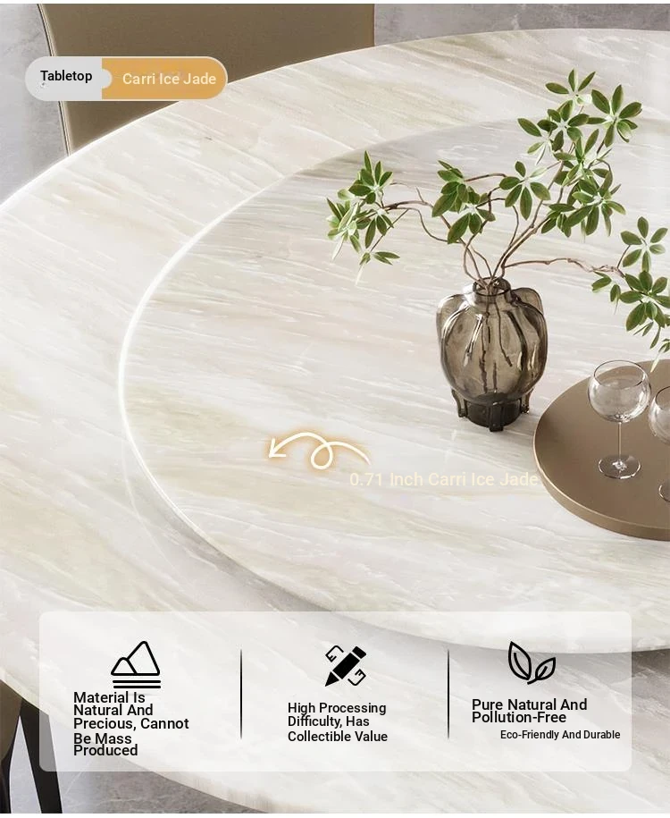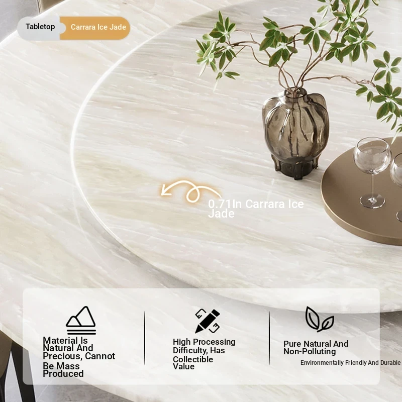 [Import] Cary Bingyu Natural Luxury Stone Dining Table 70.87in +1 Turntable