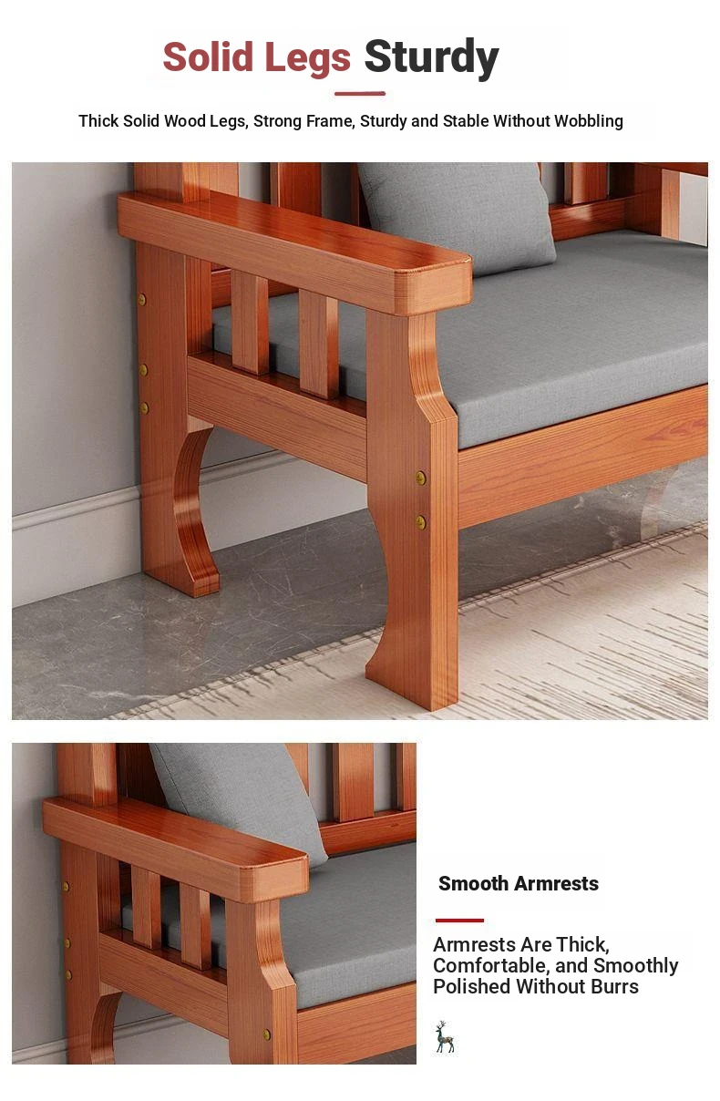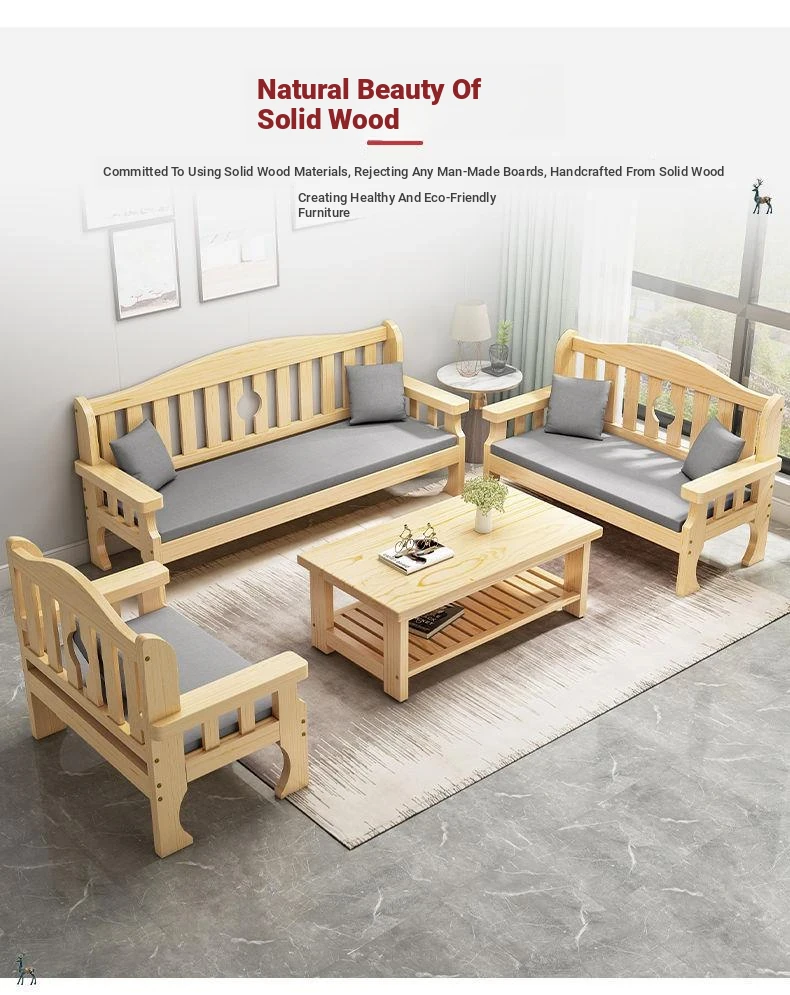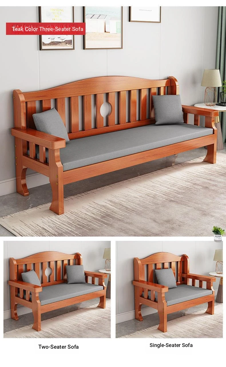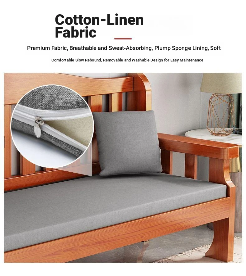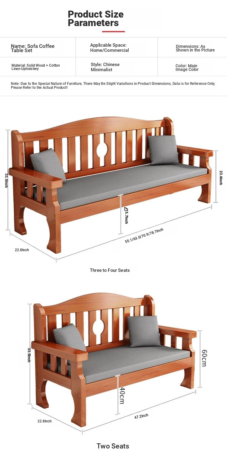 German Solid Wood Sofa - Three-Seater Combination, All Solid Wood, New Chinese Style, Minimalist Modern Design, Perfect for Small Living Rooms